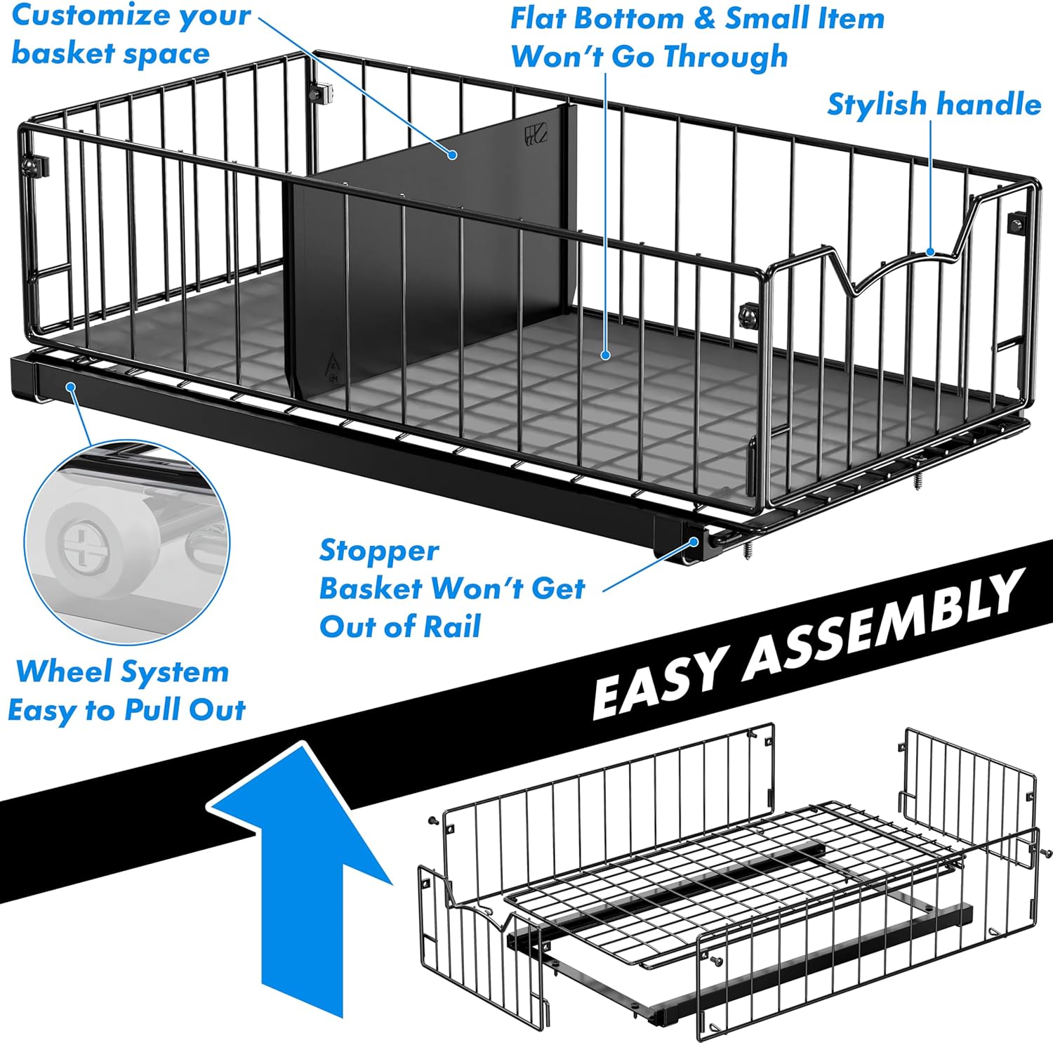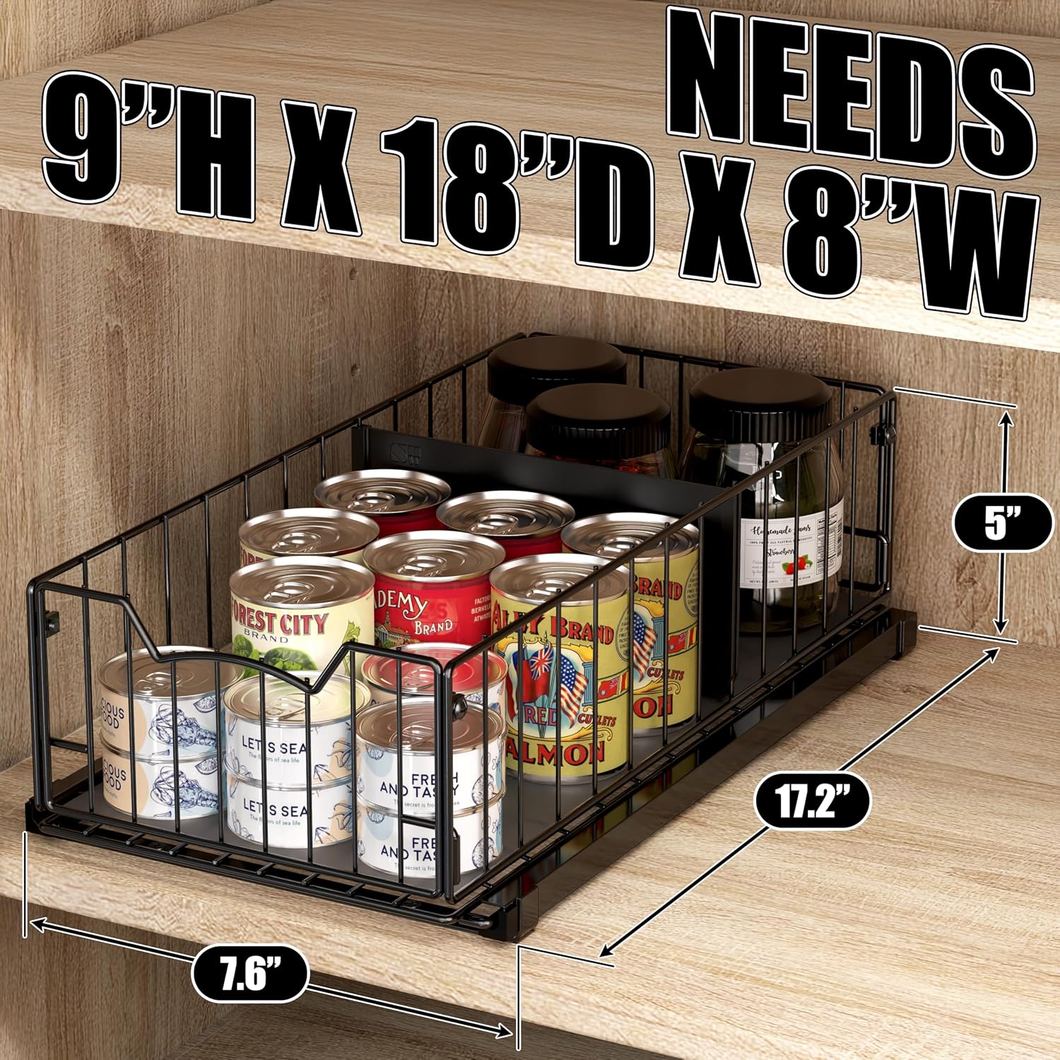 Simple Houseware Pull-Out Cabinet Sliding Basket Organizer, 17.2" D x 9.7" W x 5" H – Black, Ideal for Kitchen and Bathroom Cabinet Storage, Under Sink or Pantry Organization
