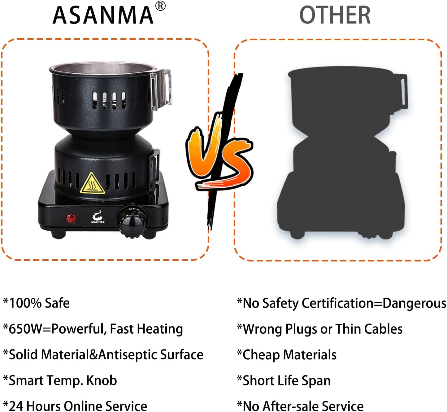 - Coal Burner - ASANMA electric stove is 100% safe to use, also have overheating & circuit protection.When heating temperature too high,automatic trip protection.(NOTE: please do not leave when you use it)