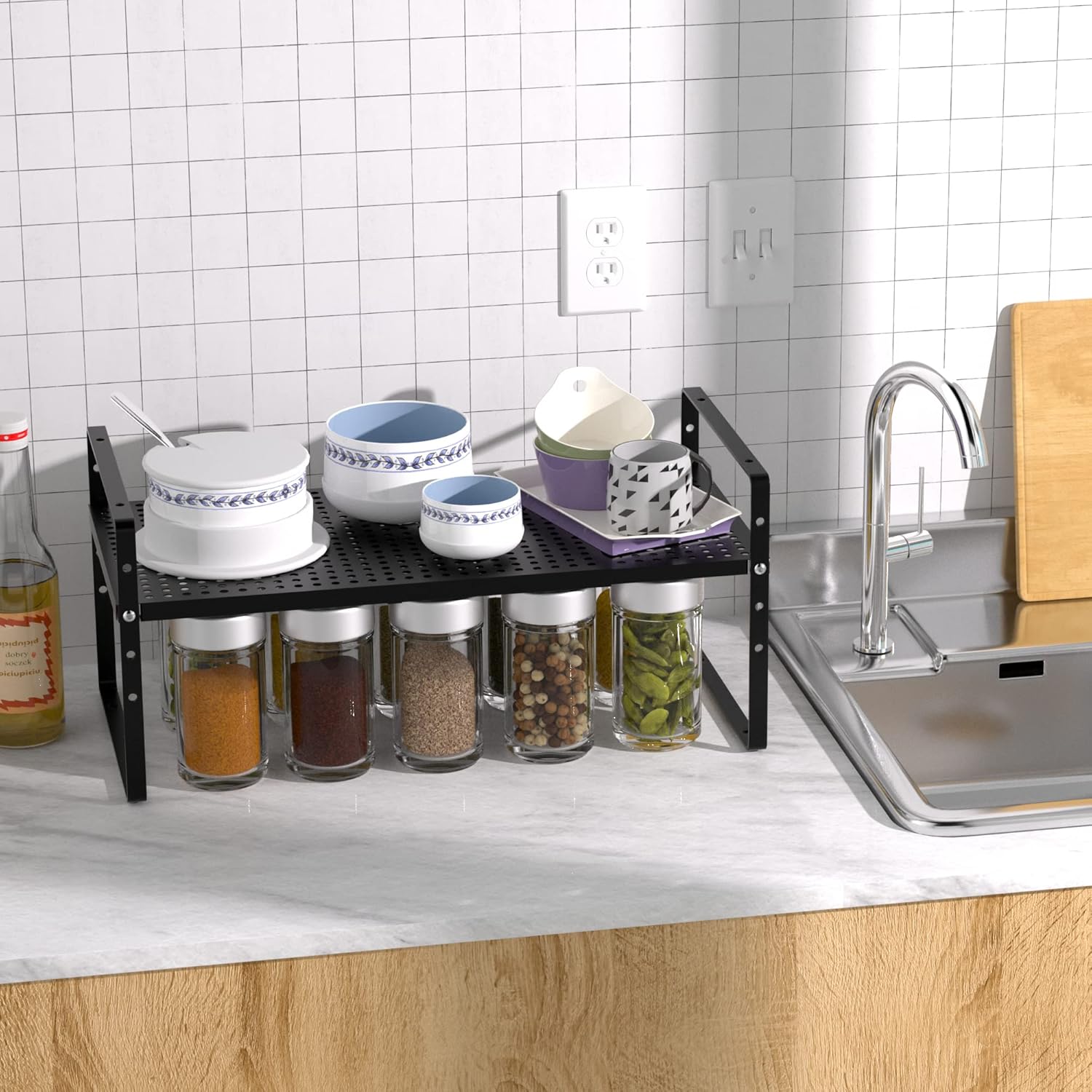 - 【Multifunctional storage】--This shelf will double your space! It can be used in various places in your home, including kitchen cabinets, desks, pantry, bathroom cabinets, closets, countertops, under the sink or any place that needs extra space to maximize storage and organization.