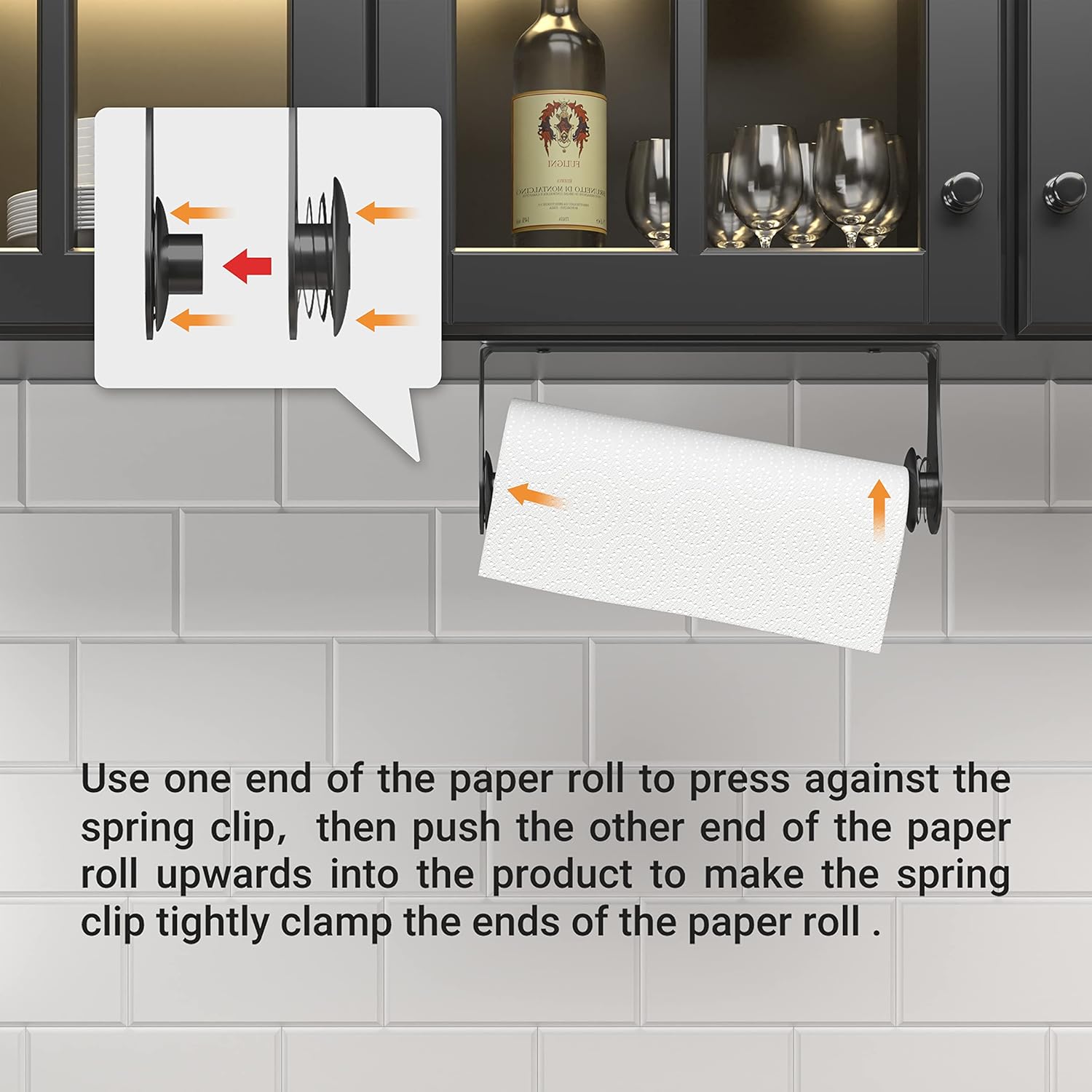 - ADVANCED RING SPRING STRUCTURE: Under counter apartment essentials paper towel holder with unique ring spring structure, it keep paper roll firmly with enough pressure than the one without spring, won’t slide around.Easy to put or take off the paper roll.