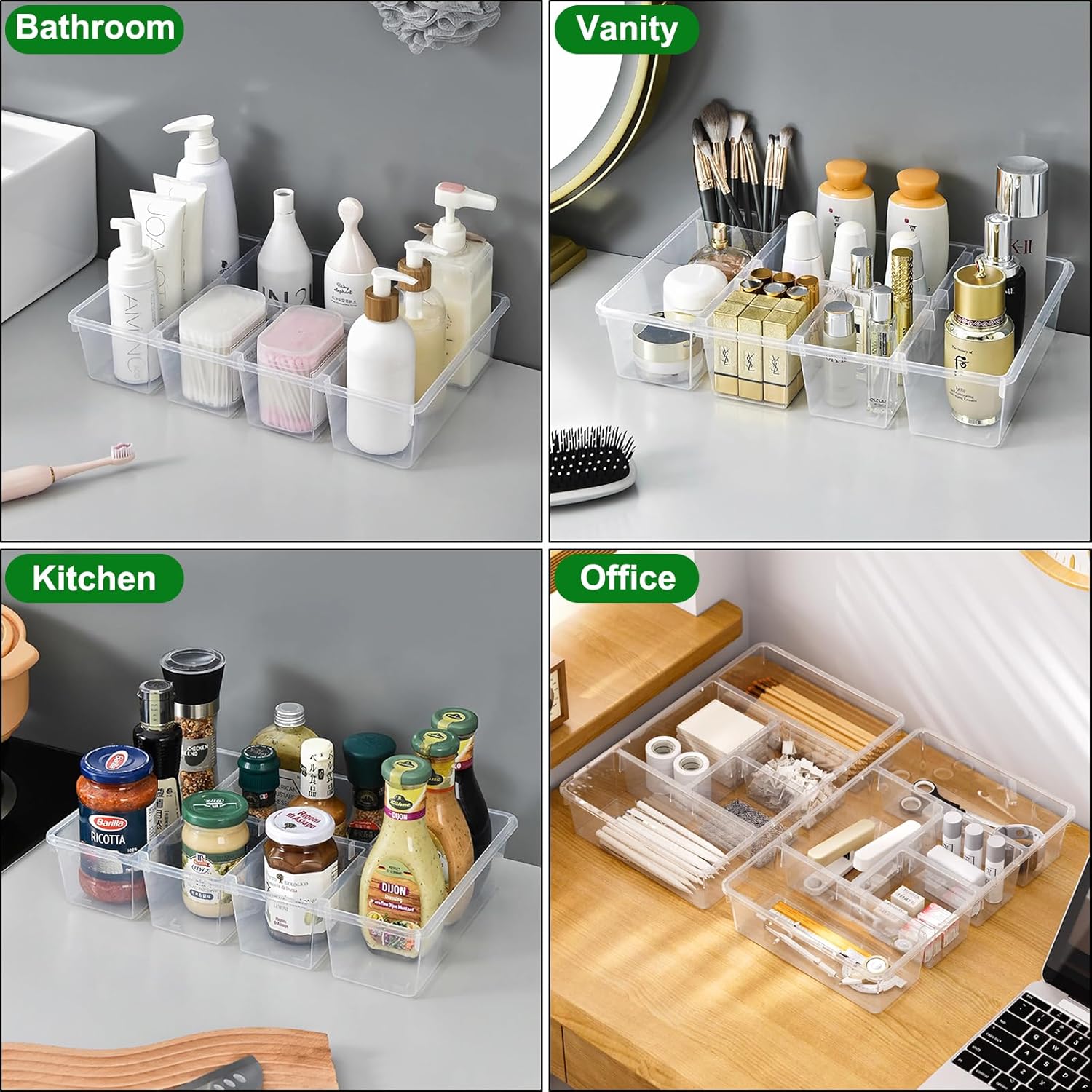 - Multi-Functional Organizer: Transition seamlessly from kitchen to bathroom with these versatile containers. Freeze smoothie-ready fruit cubes; display makeup on vanities; arrange office supplies in drawers; store bathroom toiletries or skincare essentials