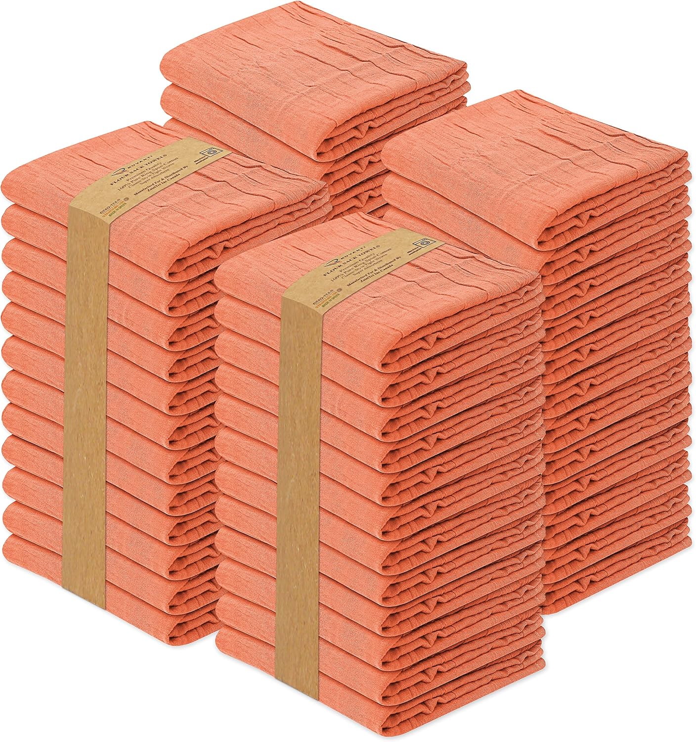 RUVANTI Flour Sack Towels 50 Pack 28x28 Inch, 100% Cotton Tea Towel, Reusable, Machine Washable, Absorbent BarTowels - Dish Cloth Perfect for Drying Dishes & Cleaning - Orange