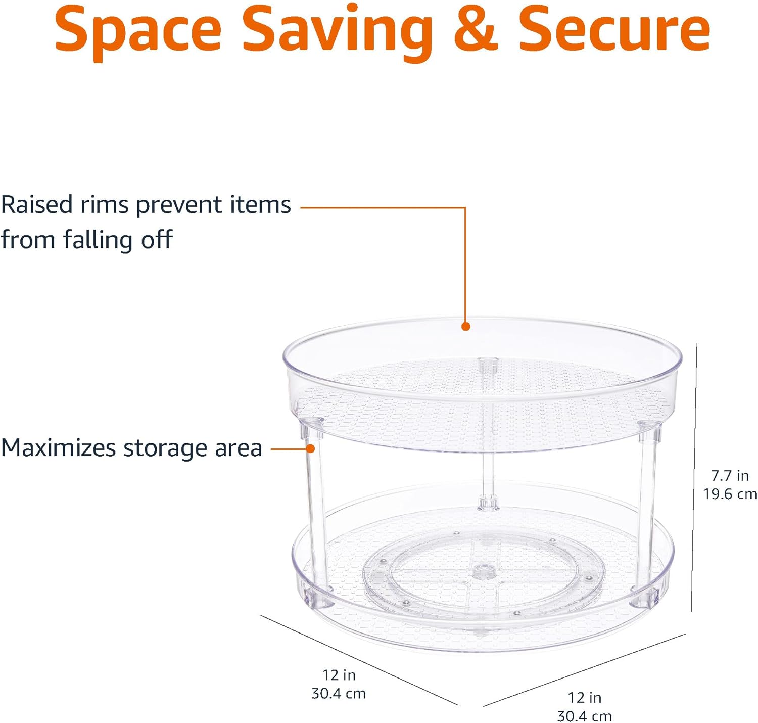 Amazon Basics 2 Tier Lazy Susan Turntable Organizer, 12" Diameter, Clear