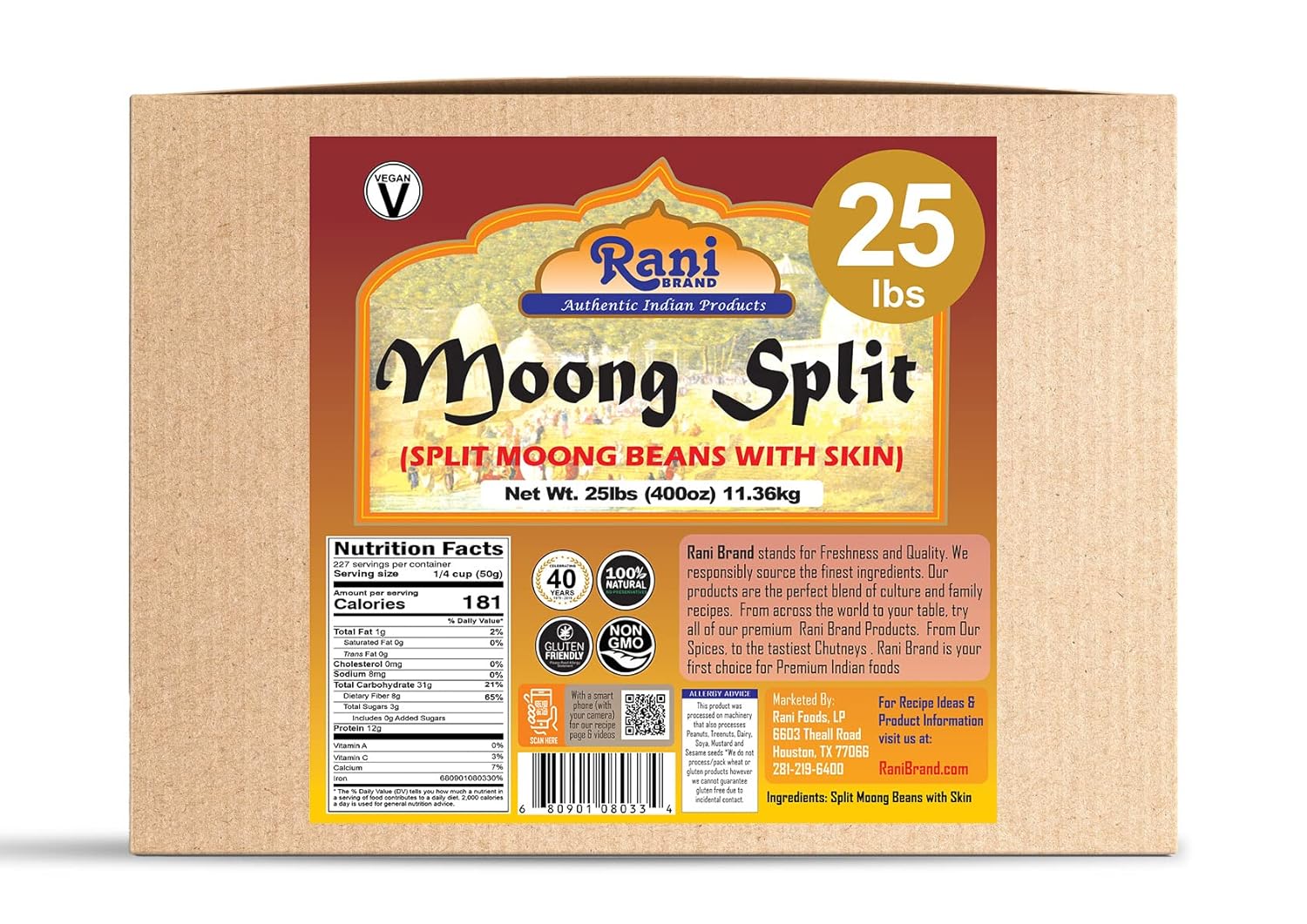 Rani Moong Split (Split Mung Beans with Skin) Lentils Indian 400oz (25lbs) 11.36kg Bulk Box ~ All Natural | Gluten Friendly | Non-GMO | Kosher | Vegan | Indian Origin