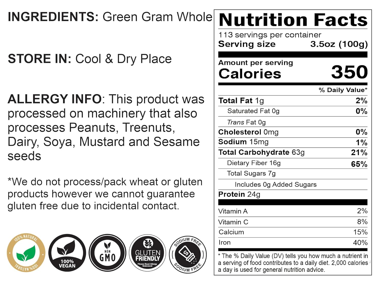 - 🌱Net Wt. 400oz (25lbs) 11.36kg, Alternate Names: Green Gram Whole
