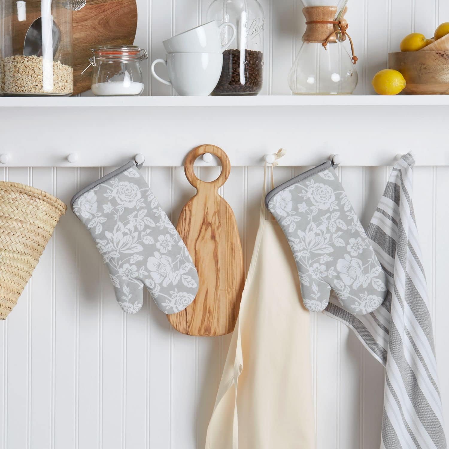 - COORDINATING KITCHEN LINENS: Display your oven mitts with coordinating kitchen essentials from the Martha Stewart Floral Vine collection that includes matching kitchen towels and oven mitts for a coordinated look. Sold separately.