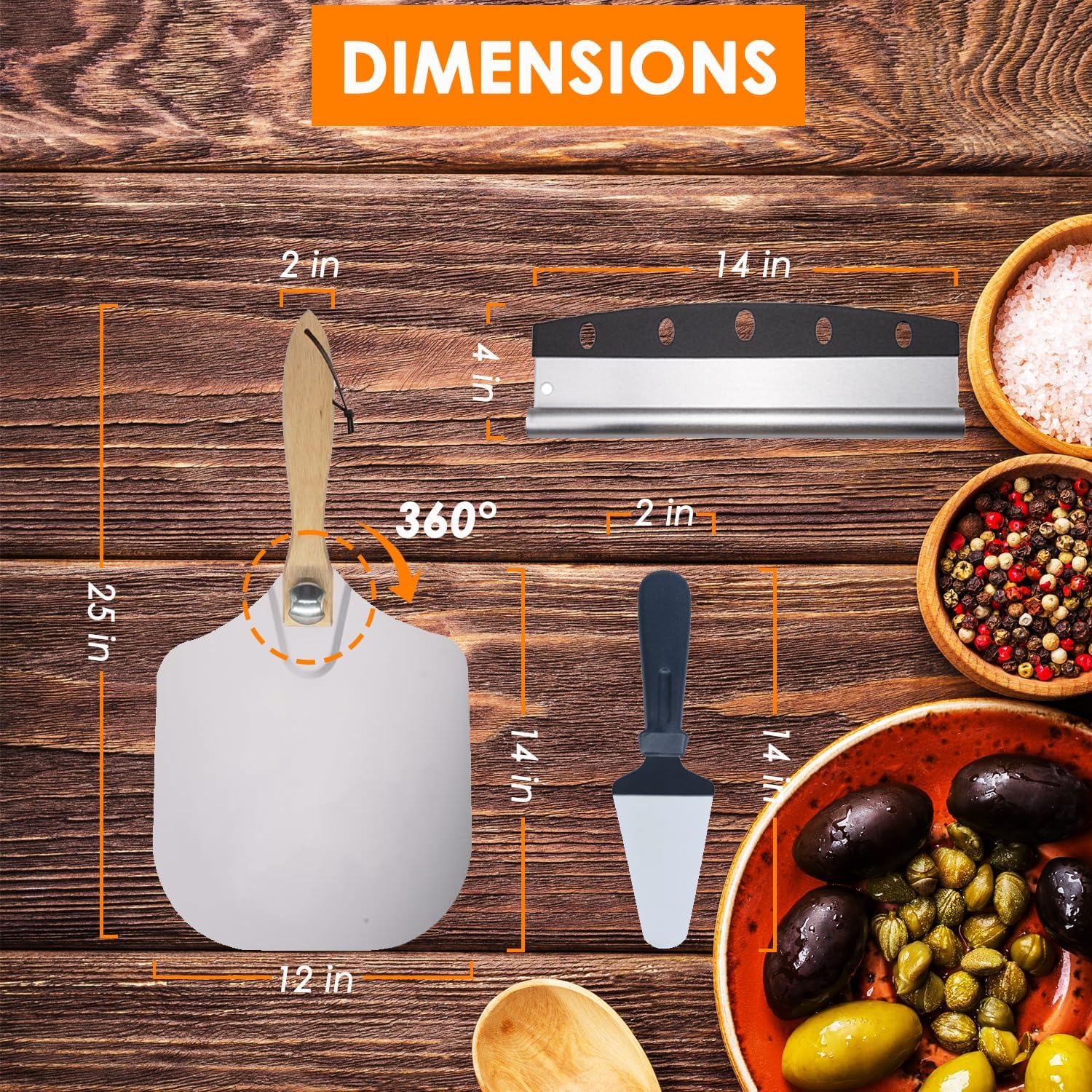 - 【High Durability & Easy to Clean】- The pure wooden pizza peels on the market are difficult to clean and need to store in a dry environment, which is very easy to breed mold and bacteria. Our pizza oven accessories are made of non-rusting metal. The metal surface will not breed any microorganisms and is very easy to clean and maintain.