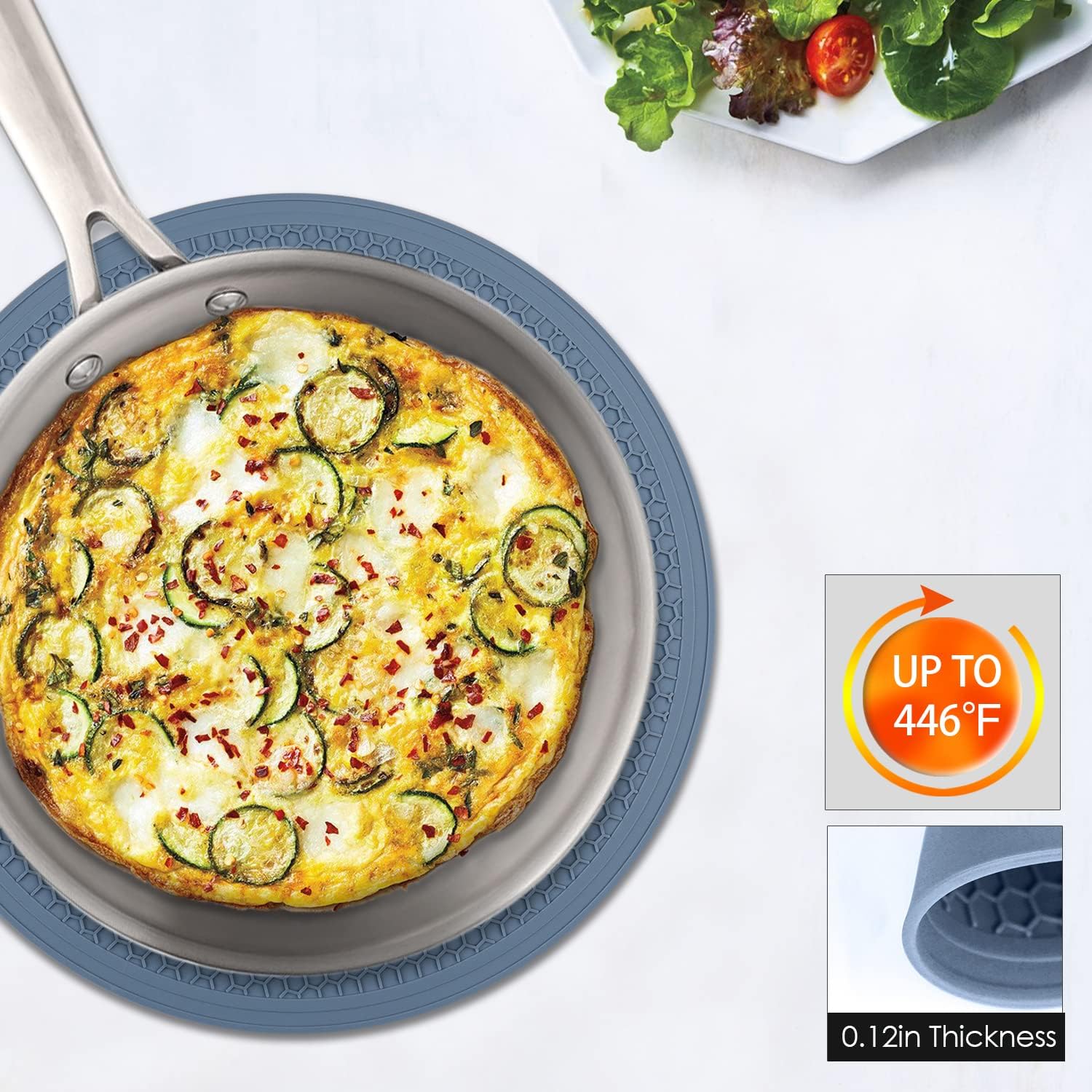 - 【LARGE DIAMETER & DURABLE】- This microwave non slip mat is very flexible, great to grab, tensile property is good and the service life is long. The blue microwave mat is 11.8 inches large diameter and fits standard glass turntables. 0.12in thickness Honeycomb designed silicone mat with a large diameter can for dish drying and holding a lot. Notched edges to prevent water from flowing onto the table.