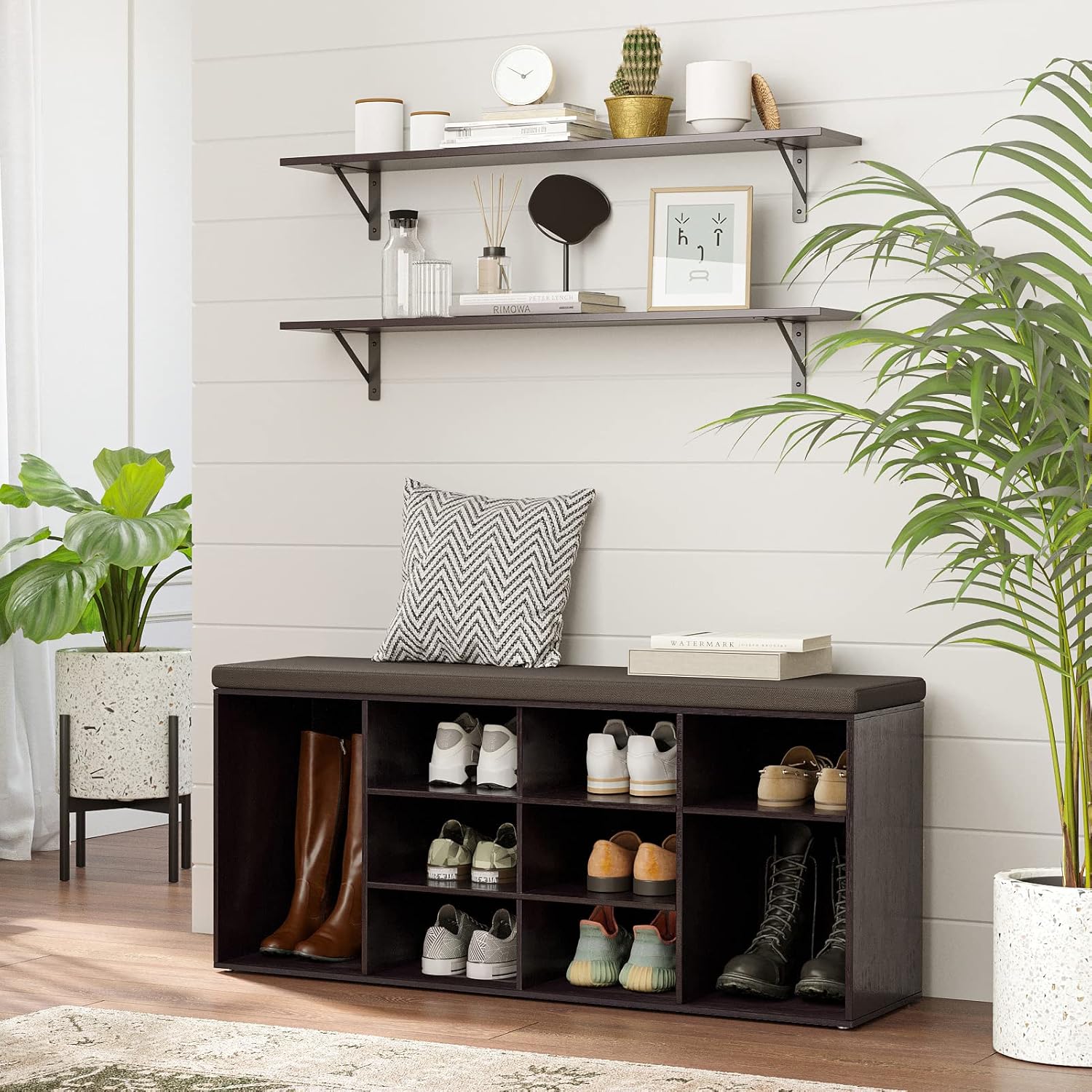 - 【Fit for All Rooms】The shelves for wall storage is gospel of small family to enjoy the tranquility of home. The large shelves allow you to store books, games, decorations, plants, towels, photos, etc. Building extra storage in living room, bathroom, bedroom, closet, balcony, study, kitchen, laundry, bar area, pantry and office