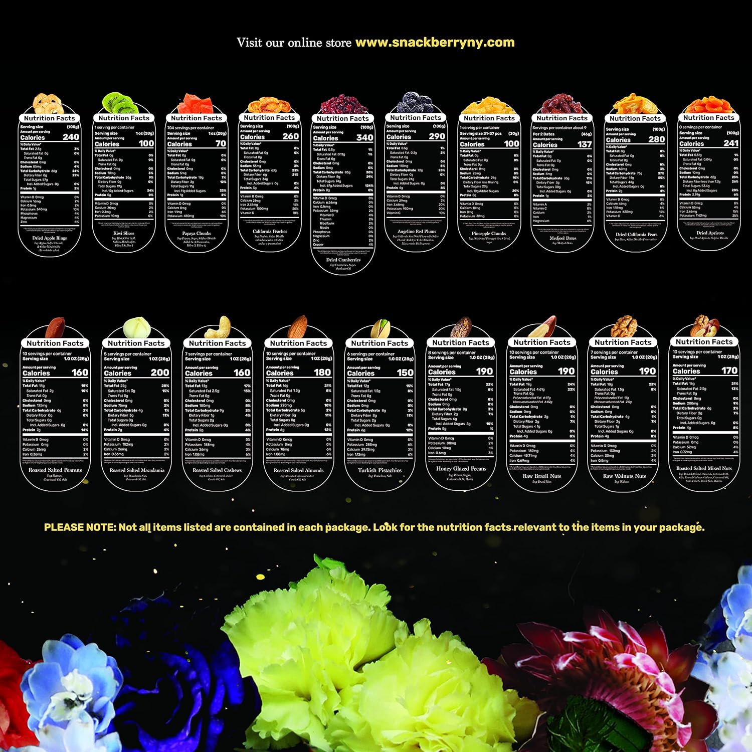 - Gourmet Gift Baskets With Premium Quality: At Snackberry we pride ourselves in our commitment to quality and freshness in every gift box. The assorted dried fruit and nuts are individually sourced from the finest artisanal producers around the country and boast the perfect texture, quality, and taste. These prime dried fruits and nuts are fresh, organic, and kosher