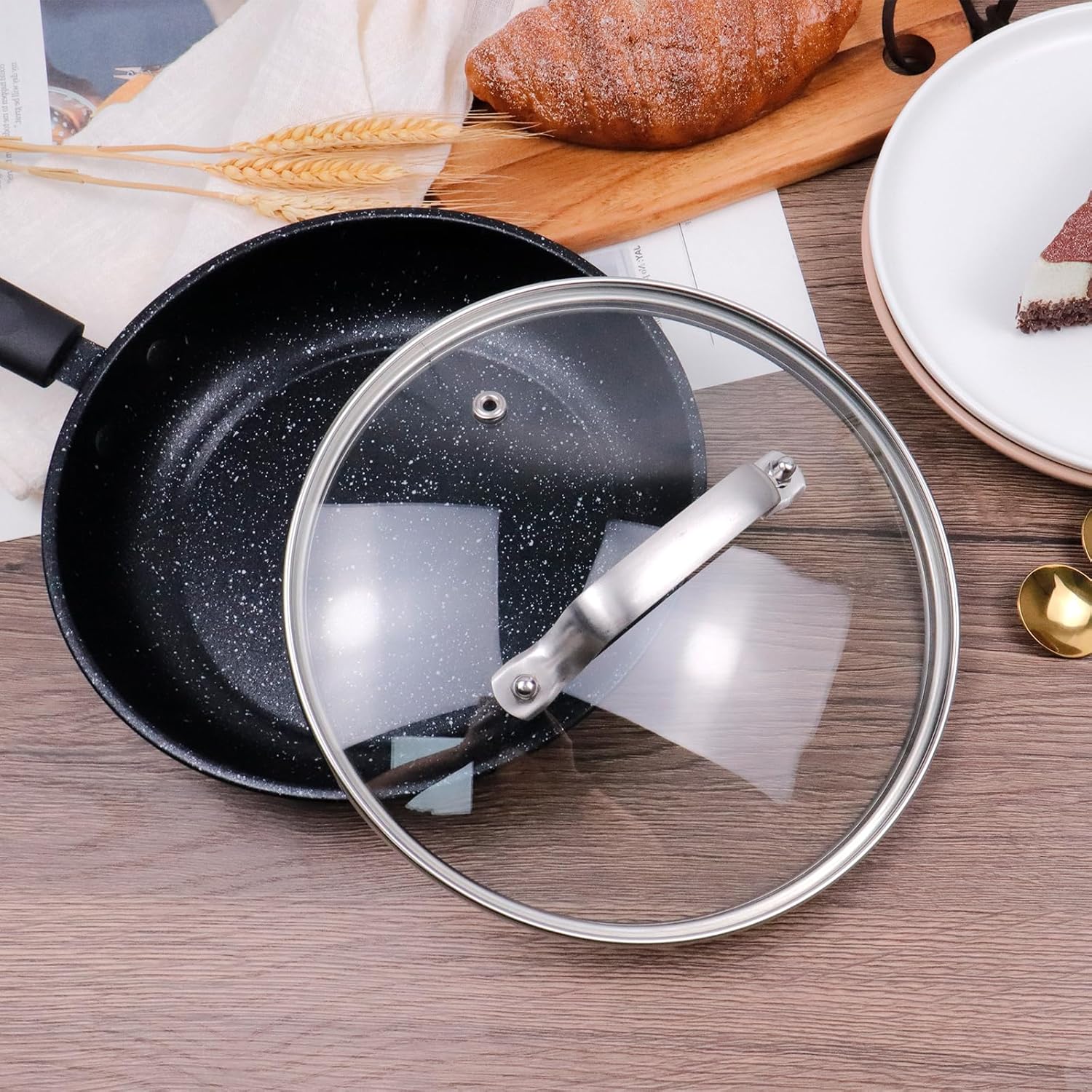 - 8" tempered glass lid is suitable for pots,pans and skillets.