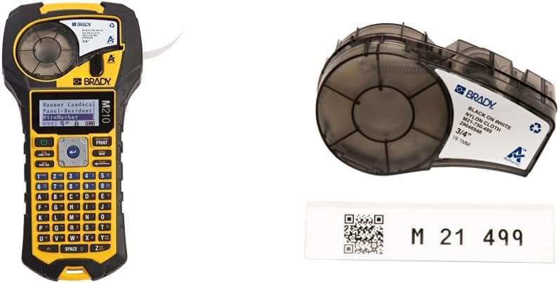 Brady M210 Portable Label Printer with Rubber Bumpers & Authentic (M21-750-499) Multi-Purpose Nylon Label for General Identification, Wire Marking, and Laboratory Labeling.75 Width, 16' Length