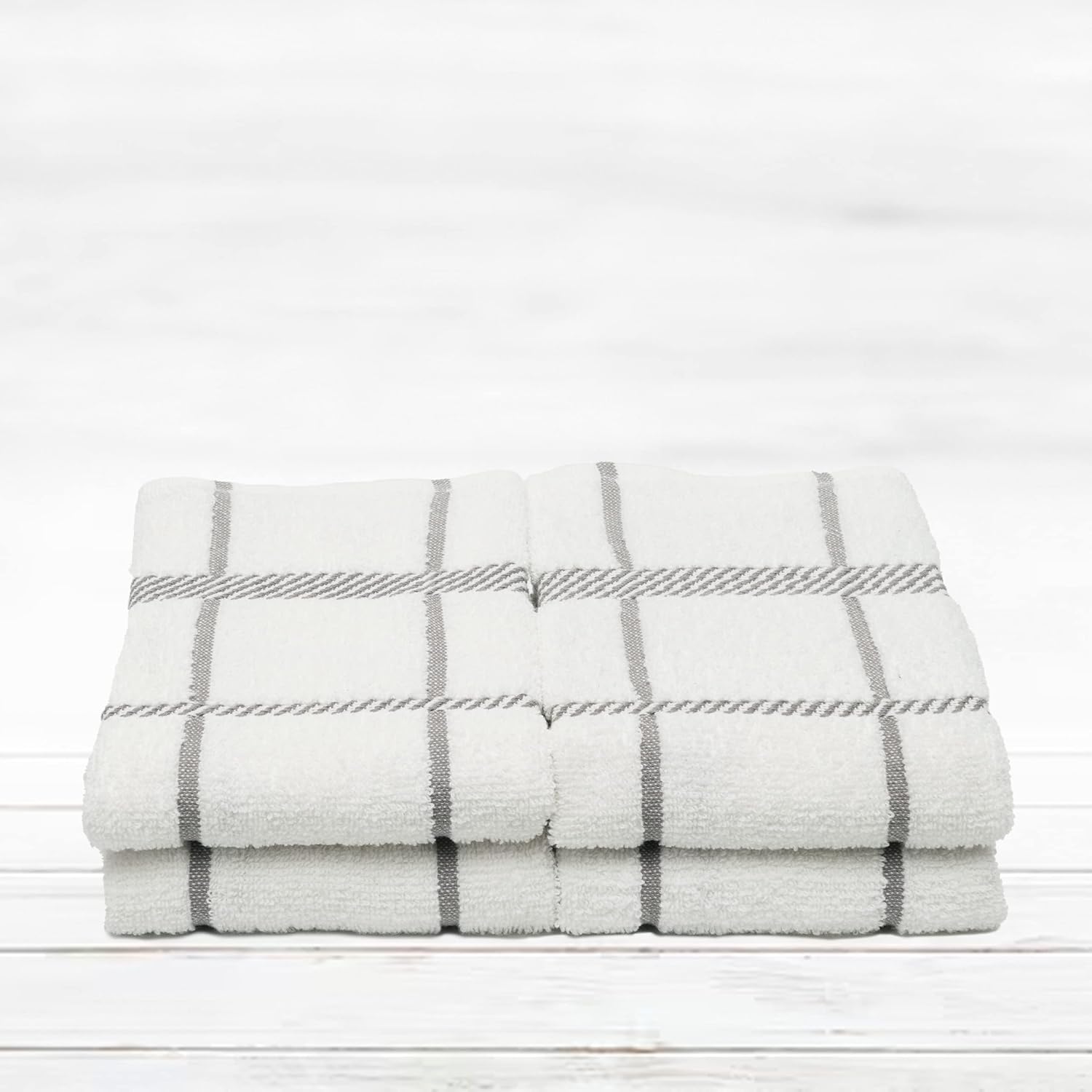 100% Cotton Terry Dish Towels, 4 Pack Checks, 16 x26 Inches, Super Soft and Absorbent Kitchen Towels, Perfect for Kitchen Cleaning and Dish Washing | Light Gray