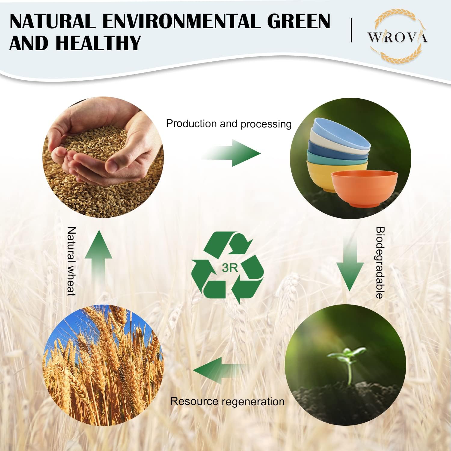 - 🌾【Wheat Straw Materials】These bowls set is made of natural organic wheat straw fiber, the material is non-toxic,odorless.There is no plastics and harmful chemical materials.Very healthy and beautiful tableware for your family.