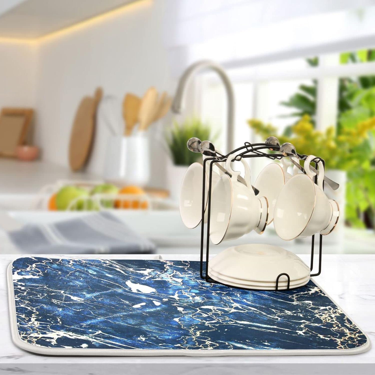 Super Absorbent Dish Drying Mat, Microfiber Fast-Drying Dish Mat, 24" x 18", Kitchen Dish Drying Pad, Marble Black Navy Blue