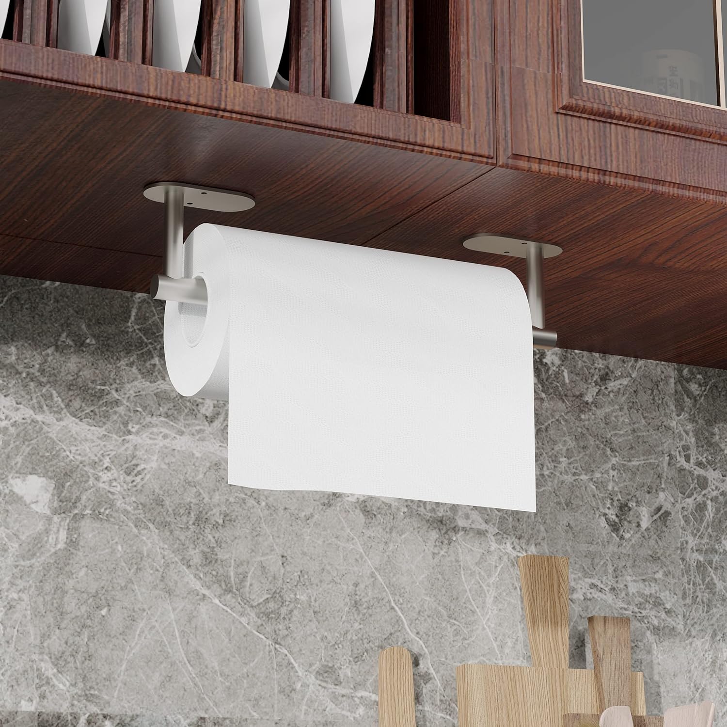 - [304 Stainless Steel] This adhesive paper towel holder is made of high quality stainless steel and zinc alloy and does not rust in wet conditions. You can install paper towel holder wall mount in the kitchen or bathroom. Stainless steel paper towel holder can fit in well with your decorating style