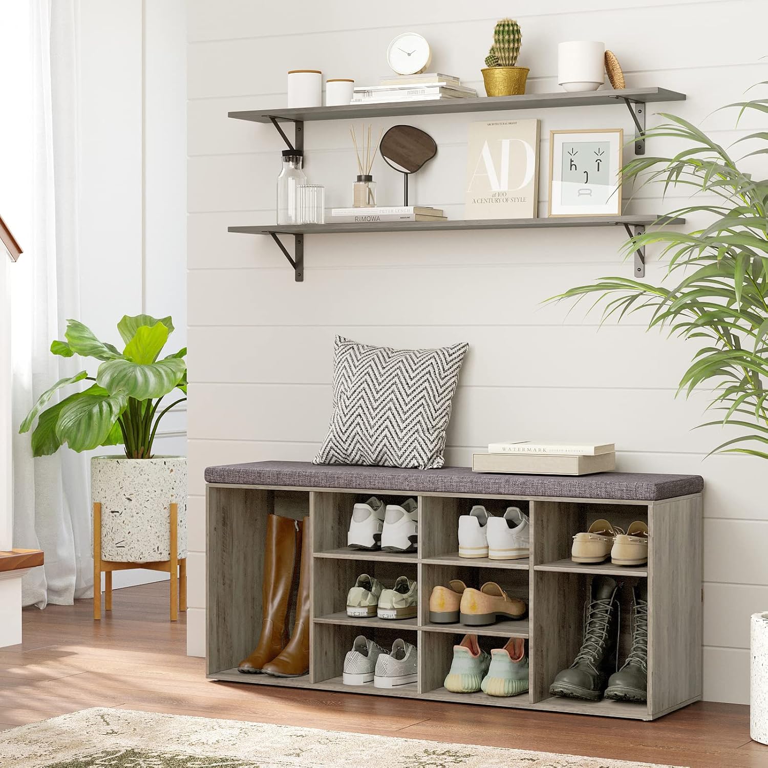 DINZI LVJ Long Wall Shelves, 47.3Inch Wall Mounted Shelves Set of 2, Extra Large Wall Storage Ledges with Sturdy Metal Brackets for Living Room, Bathroom, Bedroom, Kitchen, Grey Wash