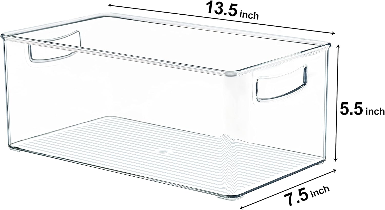 Hudgan 2 Pack Straight Sides Stackable Pantry Organizer Bins for Home Edit - 13.5''L x 7.5''W x 5.5''H