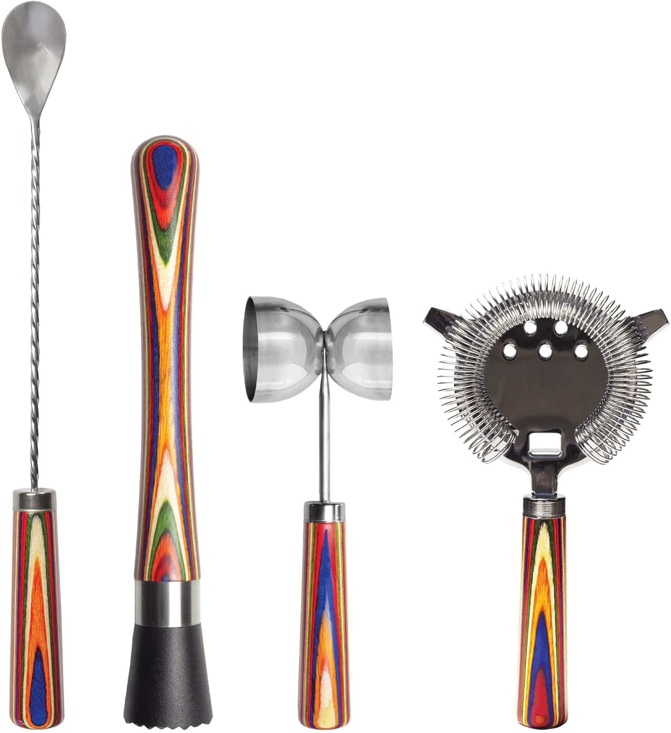 - LASTING BEAUTY: Finely crafted stainless steel tools provide professional quality and durability while the colorful birch wood adds exciting accents of lasting color that look amazing when in use or sitting on the home bar