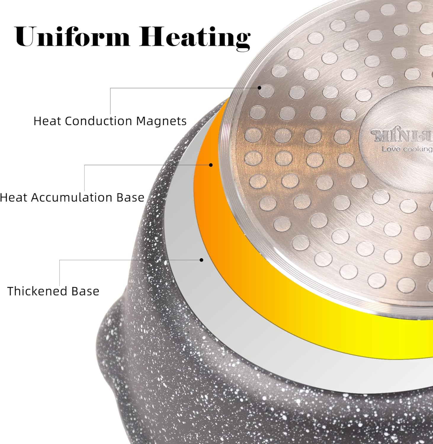 - 【Compatible of Most Stovetops】The saucepan features a versatile stainless steel heat-conductive base, making it compatible with a variety of stovetops, including gas, induction, and ceramic. Enjoy faster and more even heat distribution, saving energy and time in the kitchen. Please note that it is not suitable for oven use.