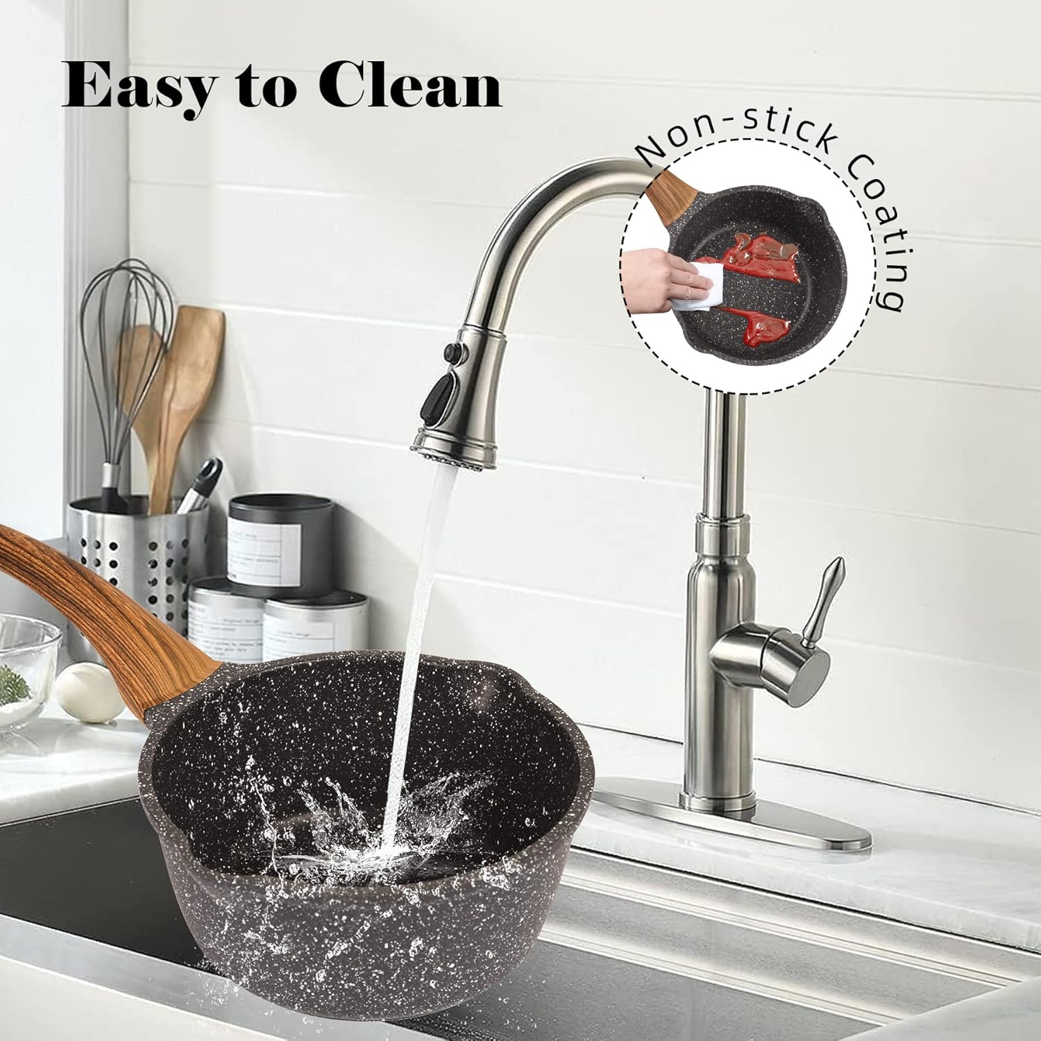 - 【Robust Pot Body】Crafted using die-casting process, this saucepan boasts an exceptionally robust pot body that is resistant to deformation and cracks. It provides reliable heat stability, saving you valuable cooking time and energy. With a safe temperature of up to 356°F, it's the perfect choice for delectable pastas, flavorful sauces, fresh vegetables, and savory simmered soups.