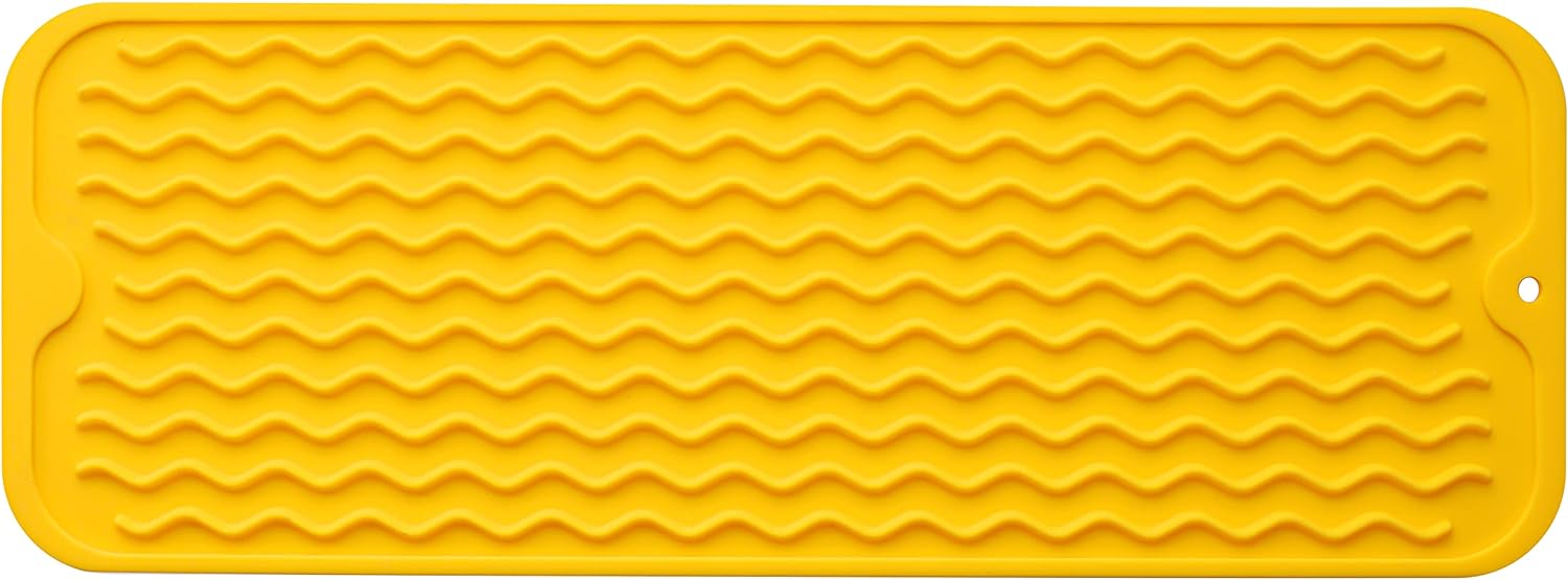 Silicone Dish Drying Mat for Multiple Usage,Easy clean,Eco-friendly,Heat-resistant Silicone Mat for Kitchen Counter,Sink,Bar,Bottle,or Cup Yellow M 17 inches x 6 inches