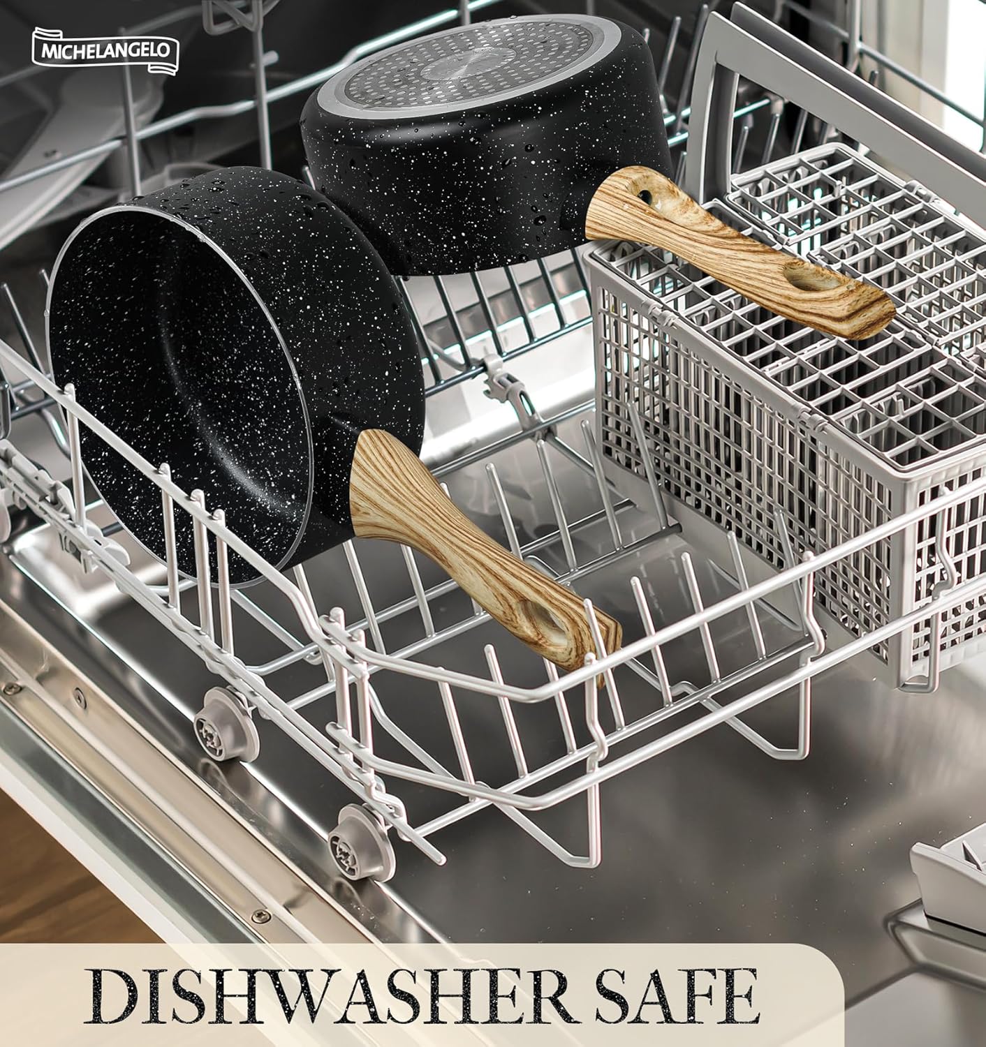 - 【Easy to Clean】The stone coating of this sauce pan set delivers ultimate food release, ideal for use on low to medium heat with less oil. Cleans up easily.