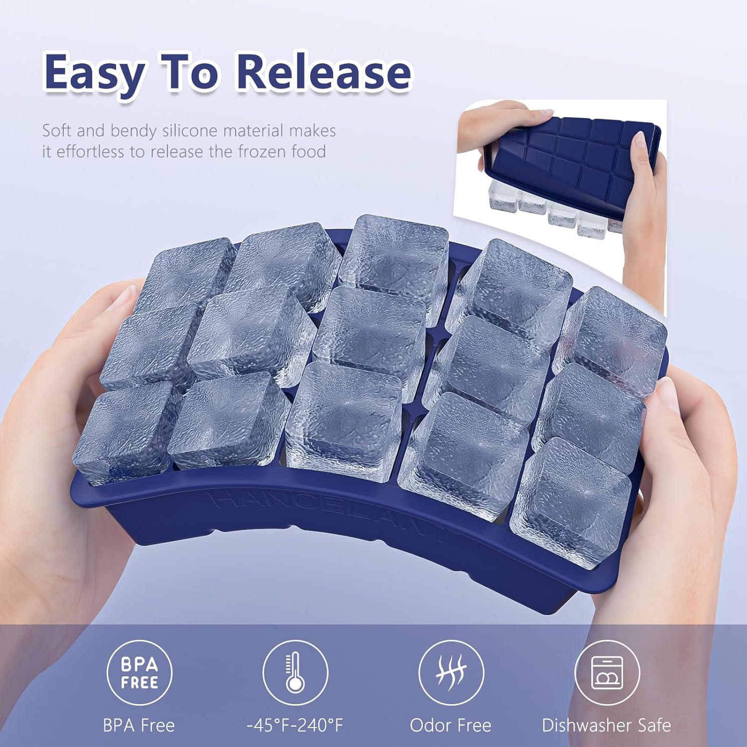 Silicone Ice Cube Tray 2 Pack, HANCELANT Ice Cube Mold, Ice Trays for Freezer with Lid for Whiskey, Baby Food, BPA Free, Easy Release
