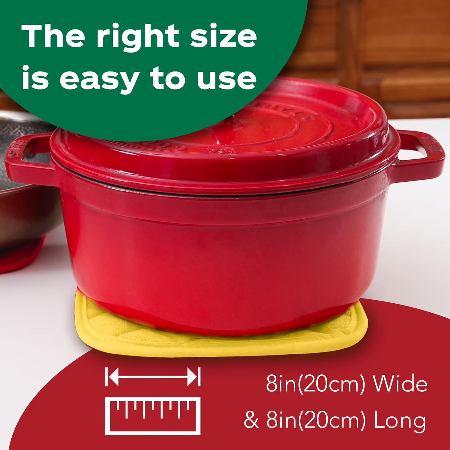 - DURABLE AND FIRM GRIP - The flexible material allows for ease of use and firm grip on the hot dish or pot, adding safety to the cooking process.Fashionable, practical and safe to use in the kitchen as potholder or trivets. Perfect for indoor or outdoor usage all year round!