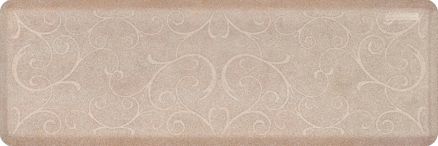 • BEAUTY & COMFORT. With a soft, subtle floral design, the WellnessMats Bella Collection floor mat features a beautiful, lyrical relief pattern of sweeping scalloped-shaped curves that will add the right amount of adornment to smaller spaces. Each mat offers comfort and performance and is supportive, resilient, and easy to clean.