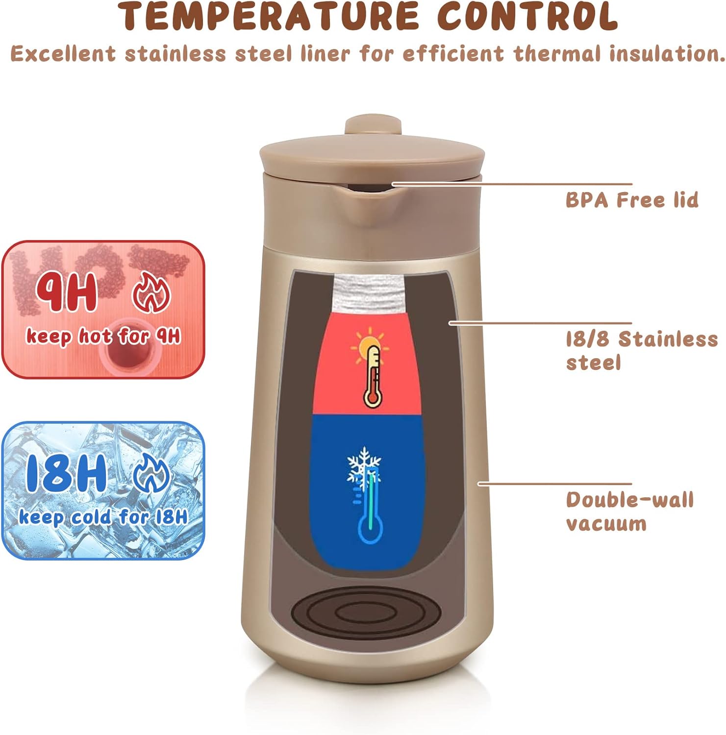 - 9HR HOT & 18HR COLD: GearRoot coffee carafe uses advanced double-wall vacuum insulated technology to lock temperature, keeps your beverage hot up to 9 hours or cold up to 18 hours, seals the taste and aroma.