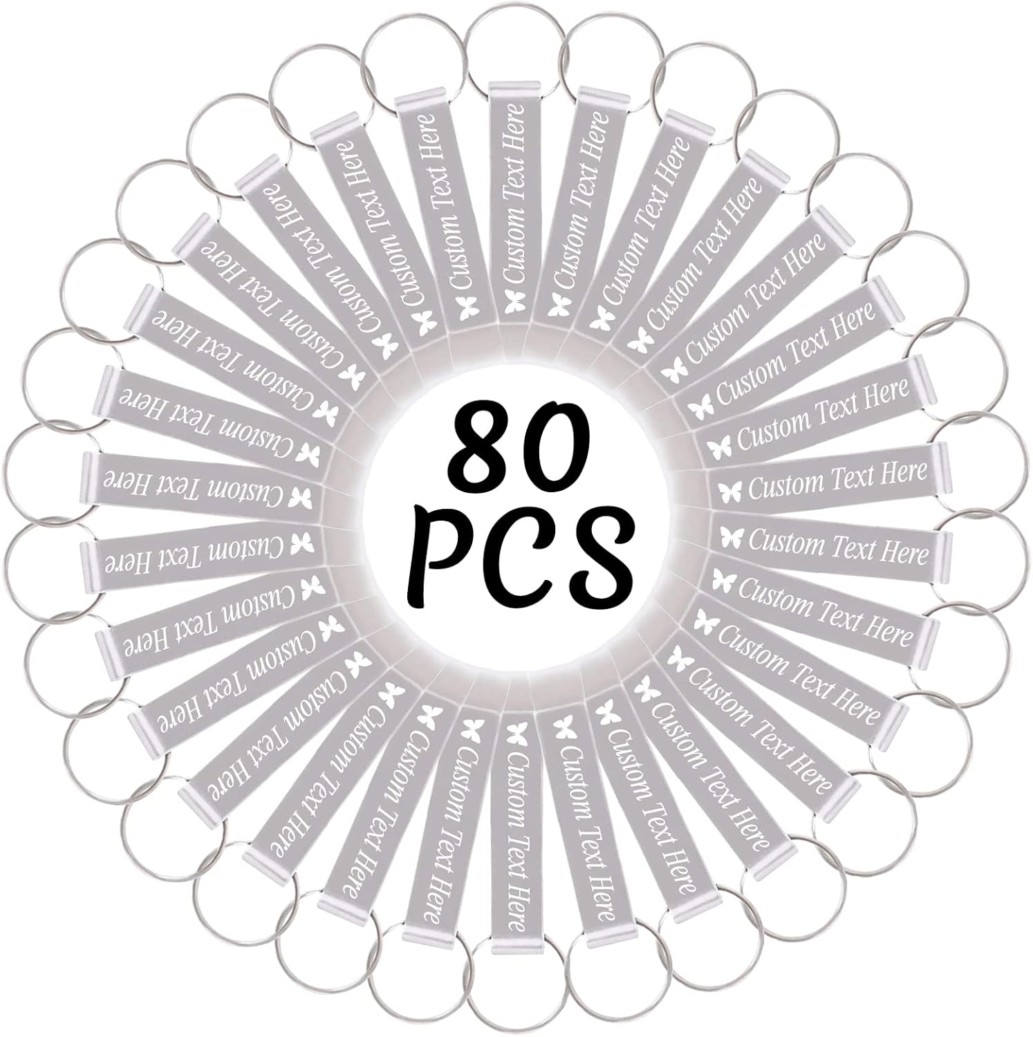80PCS Personalized Bottle Opener Keychain Bulk Custom Beer Bottle Opener with Logo Text Engraved Wedding Bottle Opener Favors Customized Gifts for Guests Baby Shower Birthday Party-Silver