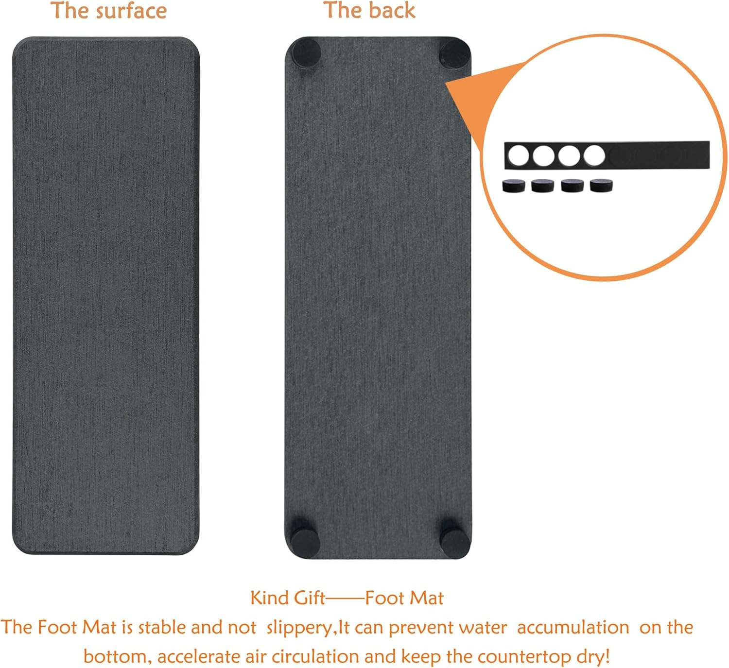 2 Pcs Water Absorbing Stone Trays, Kitchen/Bathroom Sink Soap Dish, Diatomite Tray Used for Hand Soap & Cosmetic Bottles in The Modern Home, 3.15" W x 8.7" L, Dark Gray