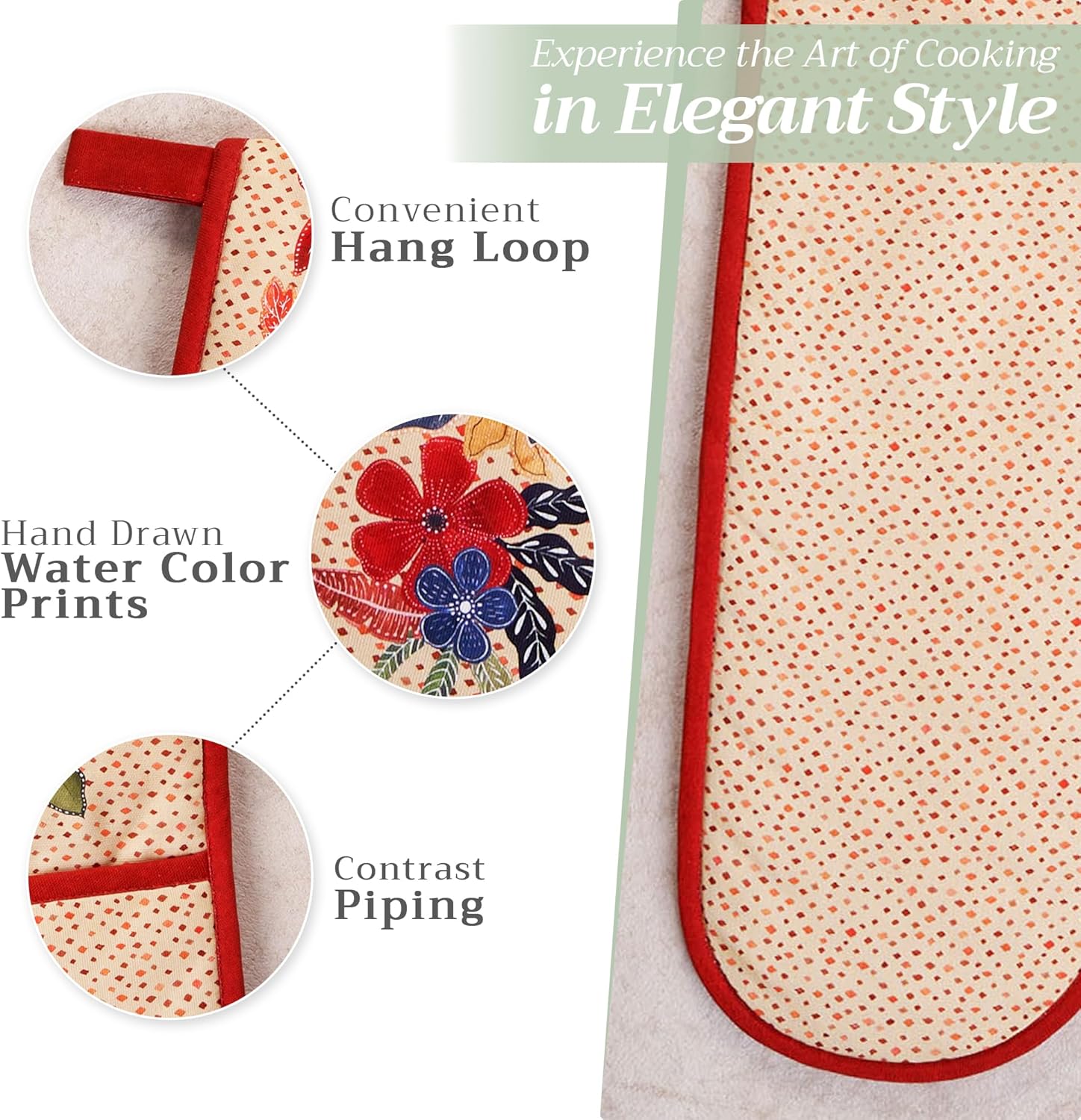 - 100% Quilted cotton: Crafted from premium quilted cotton for superior heat resistance and durability. This double oven mitt offers a soft, flexible grip and protects your hands during baking, roasting, or grilling