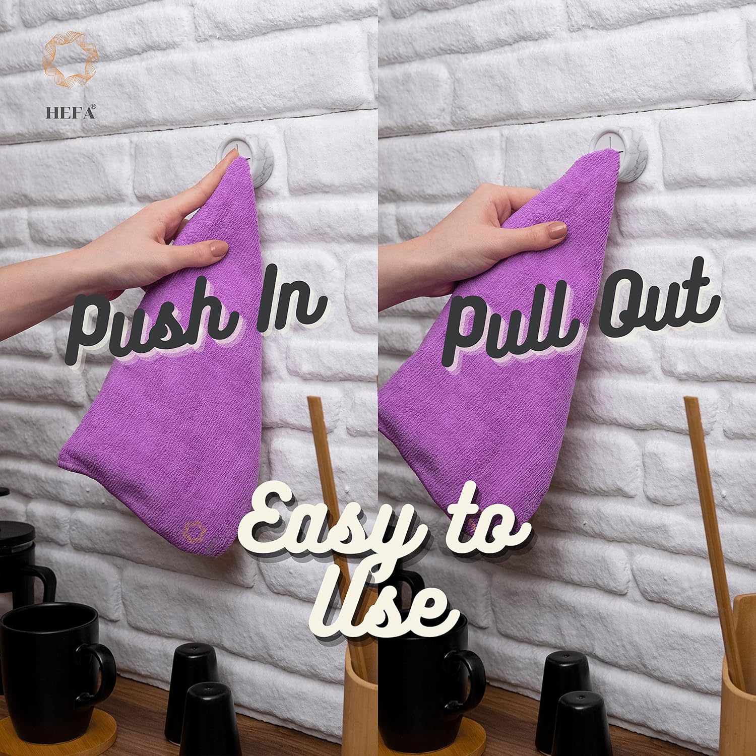 - Effortless Organization - Our practical towel hooks are versatile and easy to use. Hang hand towels, dishcloths, gloves, aprons, and more in your kitchen or bathroom. The silicone grips use a physical buckle principle to hold towels tightly without causing damage. Simply push and release to add or remove your towel.