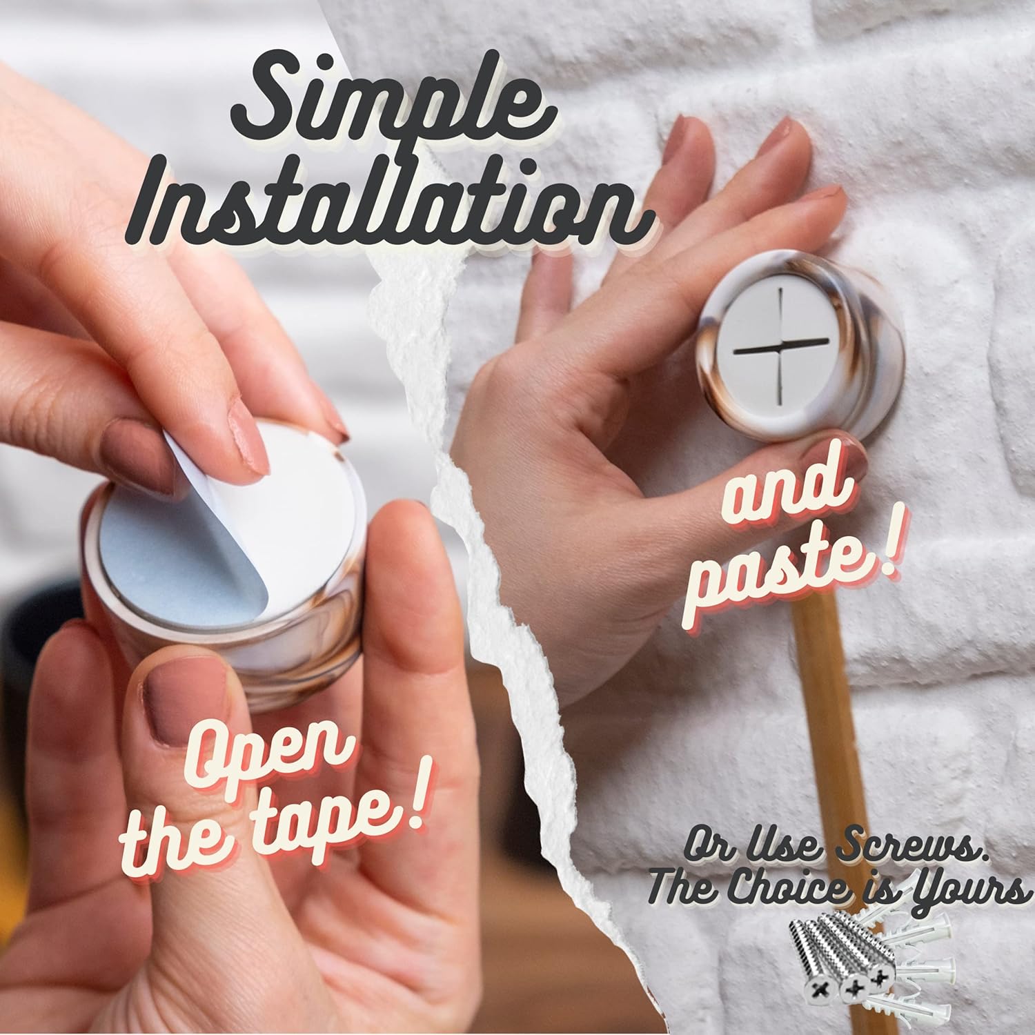 - Important Details - Our towel hooks come with screws (Kale Brand) and dowels, and self-adhesive tape (Orafol Brand) has been applied to the product. The double-sided tape is suitable for towels 2 pounds and lighter, but for heavier towels, it's recommended to mount with screws.