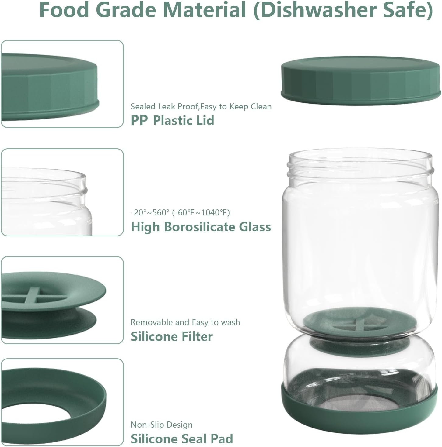 - 【UPGRADE DOUBLE LEAK-PROOF】The upgraded version of the pickle container with strainer takes a double leak-proof design. The threaded design on the inside of the lid with a silicone sealing ring ensures an airtight seal, keeping the olives tasty and fresher in the juice for longer.Making sure the lid is aligned and tightly seated before flipping means no leaks. The bottom of the pickle flip jar has a detachable non-slip base to prevent it from cracking or scratching the refrigerator shelves.