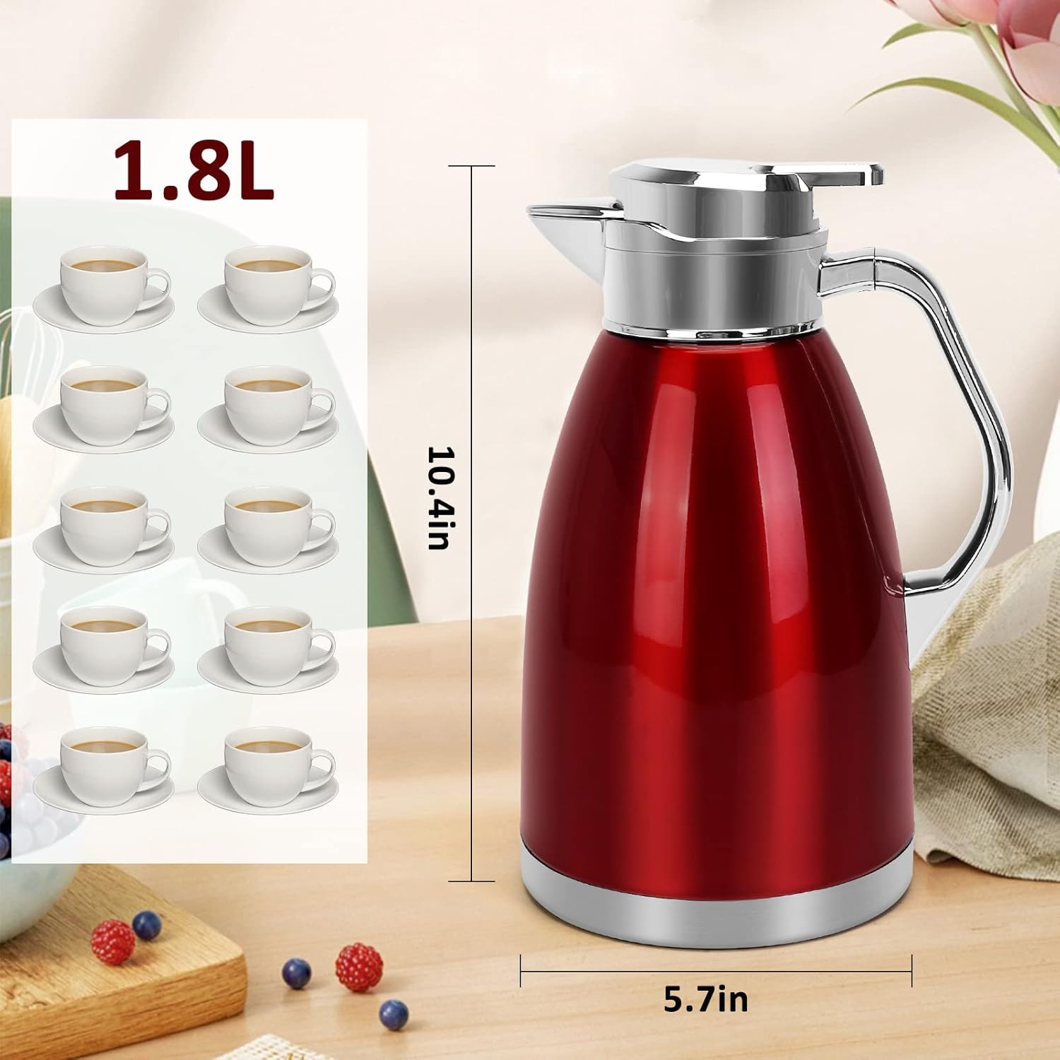 Coffee Carafes for Keeping Hot, ShineMe Stainless Steel Thermal Coffee Carafe, Double Walled Vacuum Coffee Pot, 61oz(1.8L) Insulated Hot Water & Coffee Dispenser, 12H Heat/24H Cold Retention