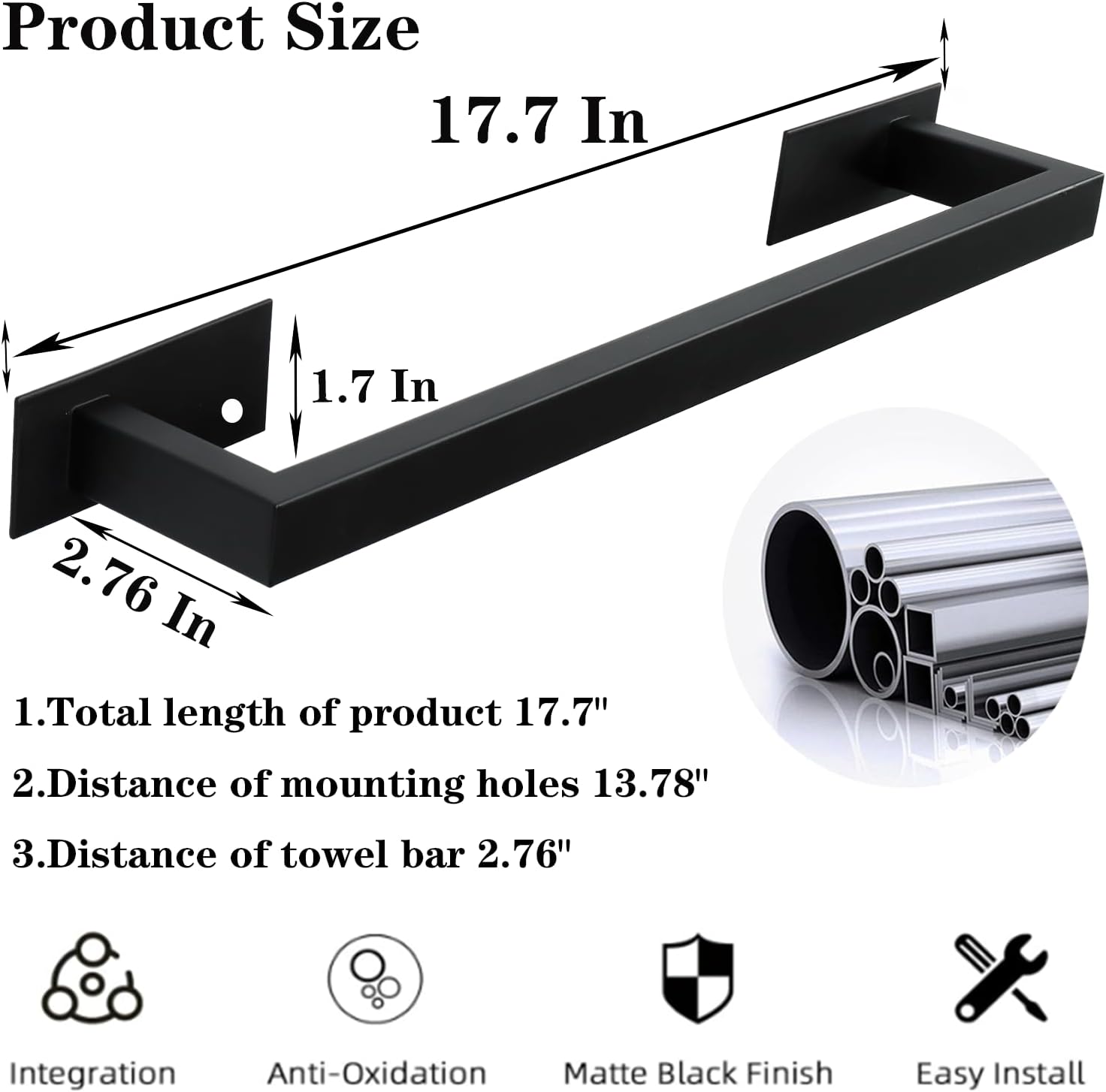 Bathroom Towel Bar Self Adhesive, No Drilling Towel Rack Easy to Install, Hand Towel Holder Made of Premium Stainless Steel Sticky on Hand Towel Hanger for Kitchen, Toilet.(17.7IN, Black)