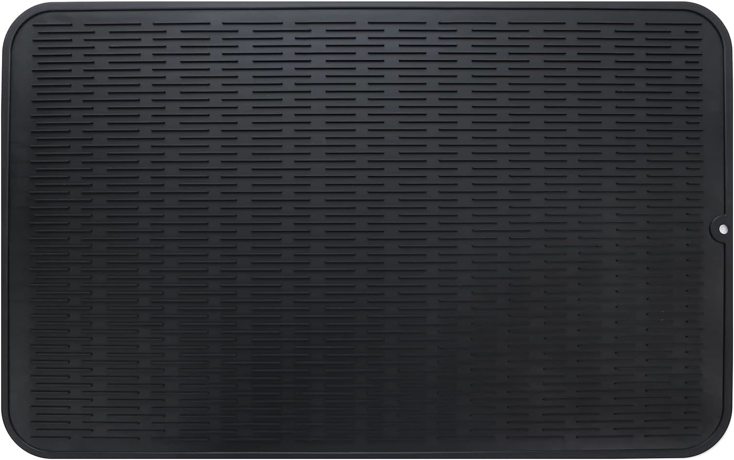 Silicone Dish Drying Mat for Multiple Usage,Easy clean,Eco-friendly,Heat-resistant Silicone Mat for Kitchen Counter or Sink,Refrigerator or Drawer Liner Black 3XL 28 inches x 18 inches