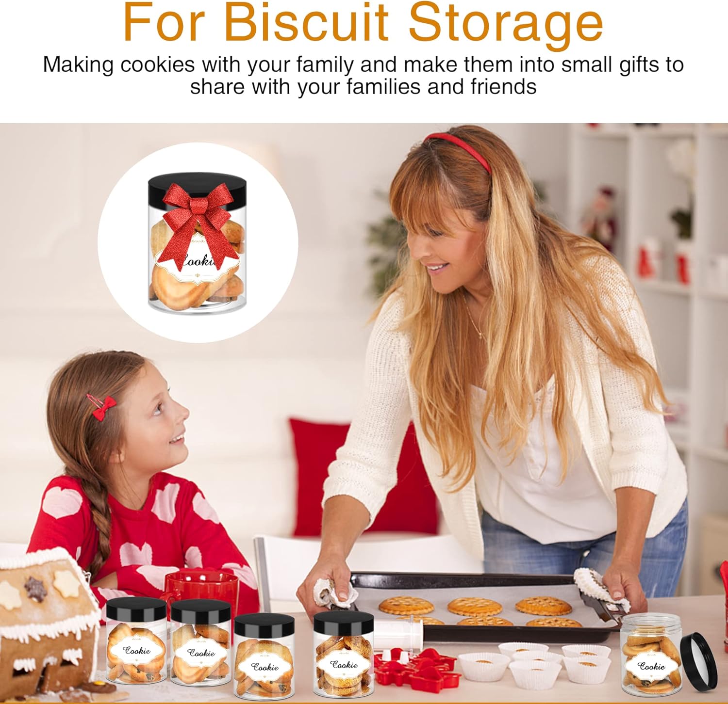 - Package & Tips: 8 oz plastic jars totally 48pcs plastic containers with black lids, you will get 48 pcs stickers for the plastic jars with lids and 1 pc pen. These clear plastic jars kit meet all your different uses. WARM TIPS: DON’T put the small jars in dishwasher. DON’T use these round jars for holding hot items. DON’T put the jars in the microwave to avoid melting. Please wash the plastic jars with lids with warm water before first use