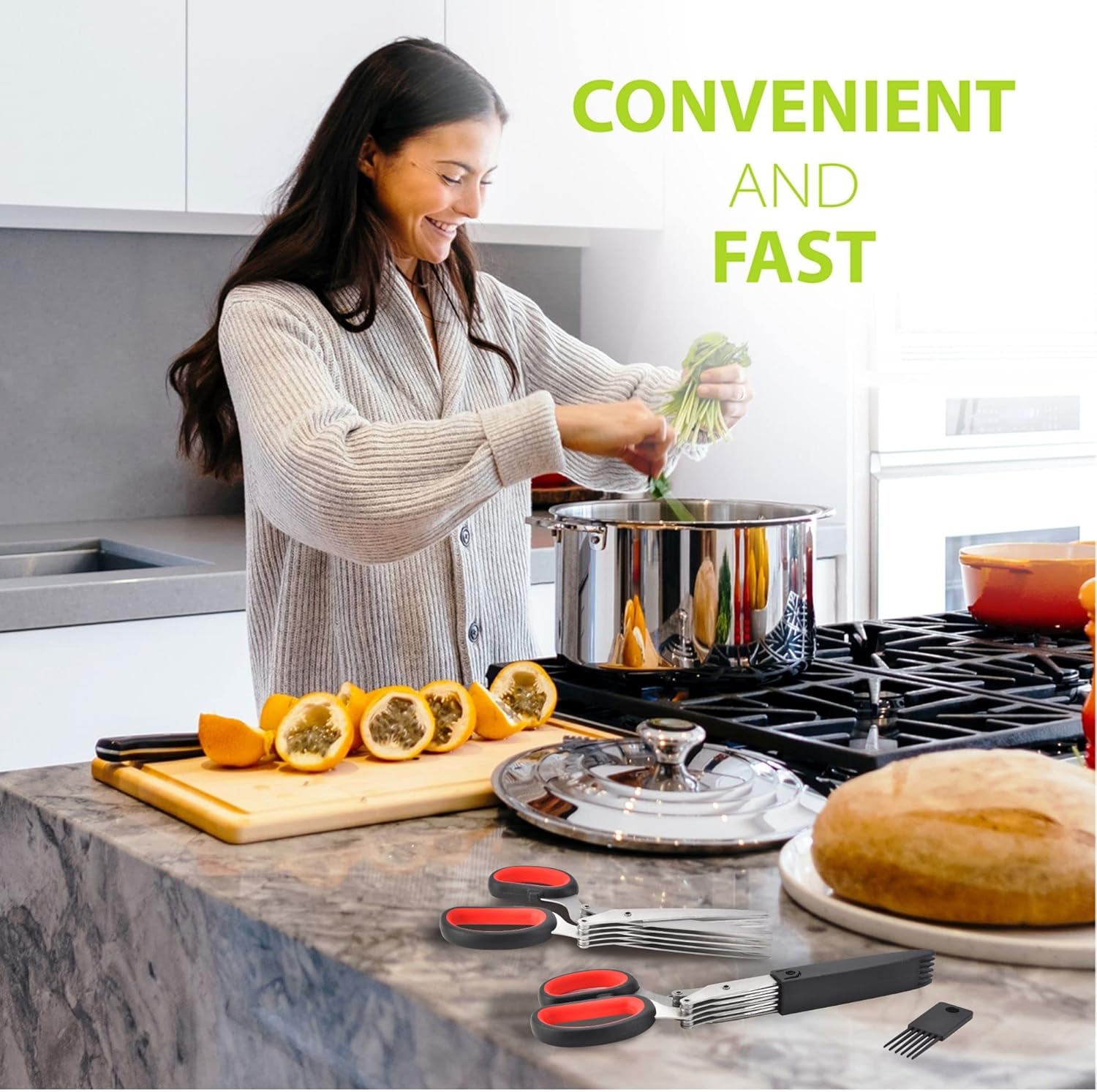 - Effortless Herb Chopping with 5 Sharp Blades - SASACIA herb scissors feature five stainless steel blades to cut herbs, lettuce, cilantro, and green onions evenly in seconds, saving you time in the kitchen.