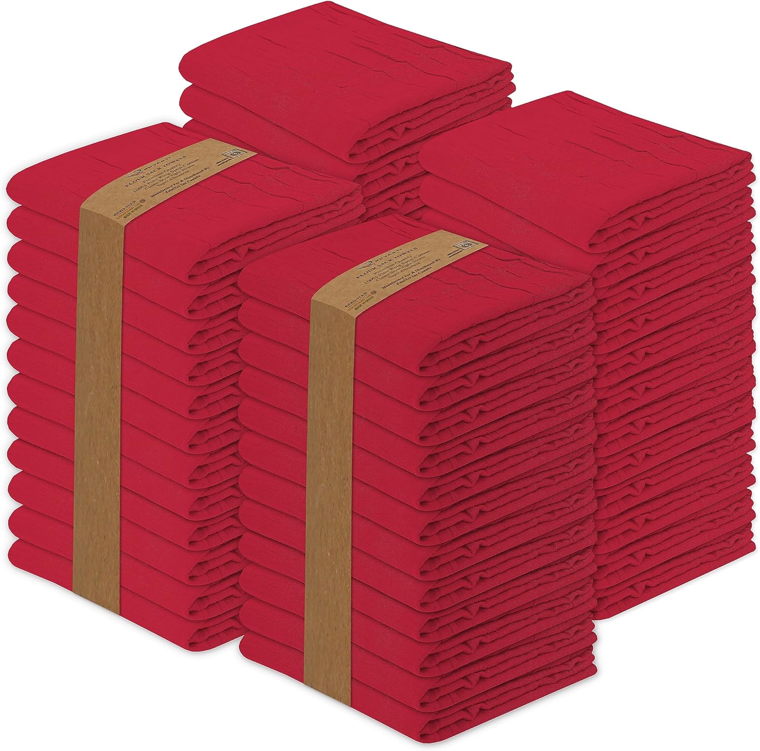RUVANTI Flour Sack Towels 50 Pack 28x28 Inch, 100% Cotton Tea Towel, Reusable, Machine Washable, Absorbent BarTowels - Dish Cloth Perfect for Drying Dishes & Cleaning - Red