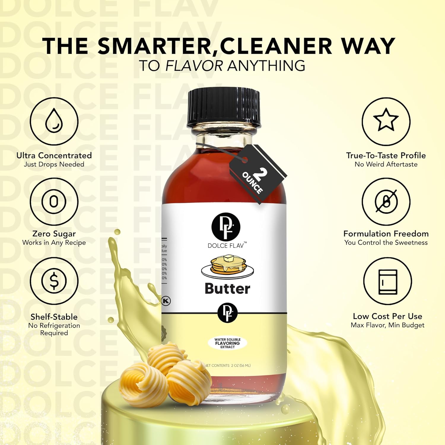 Dolce Flav Butter Extract – 8 Ounce Water-Soluble Kosher, Sugar-Free, Concentrated Imitation Butter Flavor for Baking, Cookies & Frostings, Includes Measured Dropper