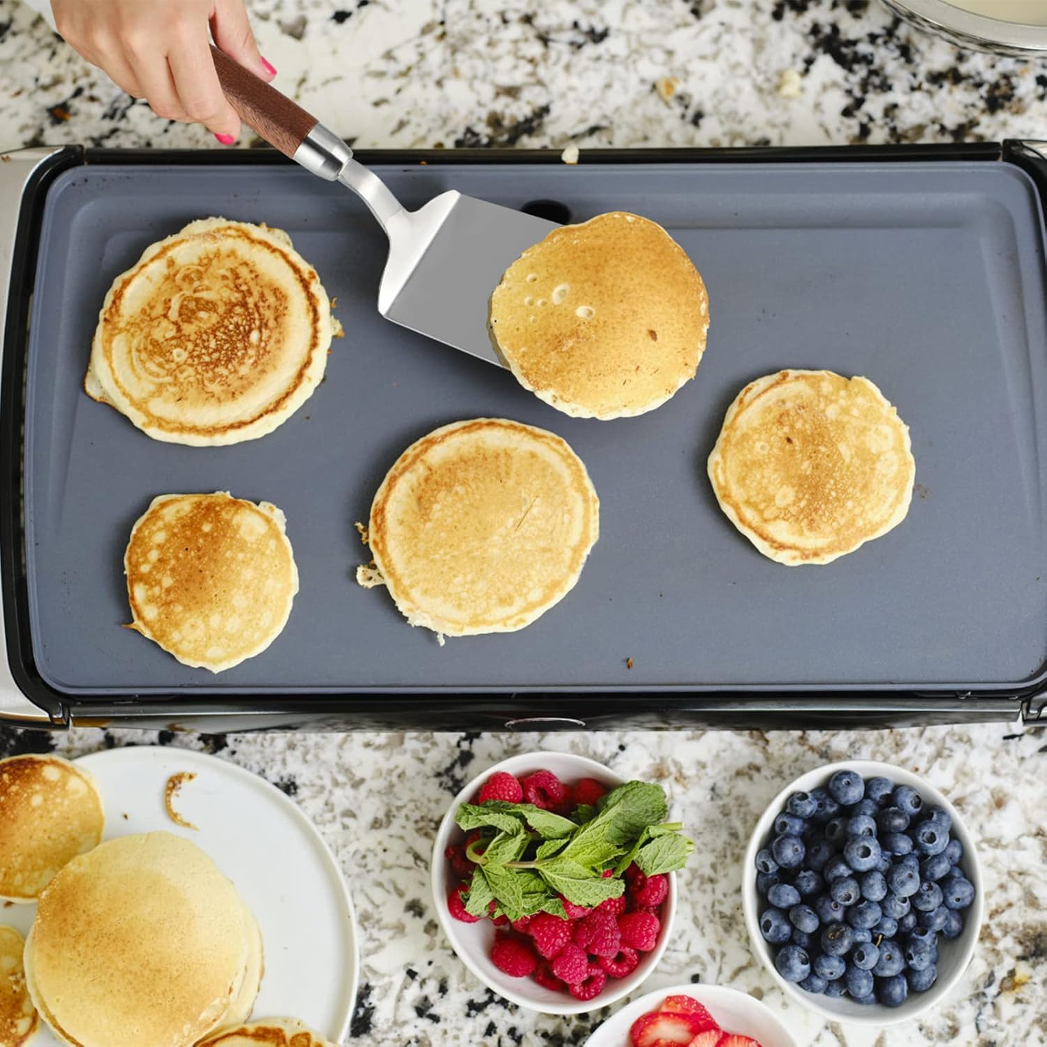 - NONSTICK DESIGN: The stainless steel blade in polished finish is sleek as mirror, nonstick and easy to clean; And the 4.6" x 3.3" wide surface is perfect for flipping pancake, egg, fish, steak, burger, omelet, bread, pizza or cake