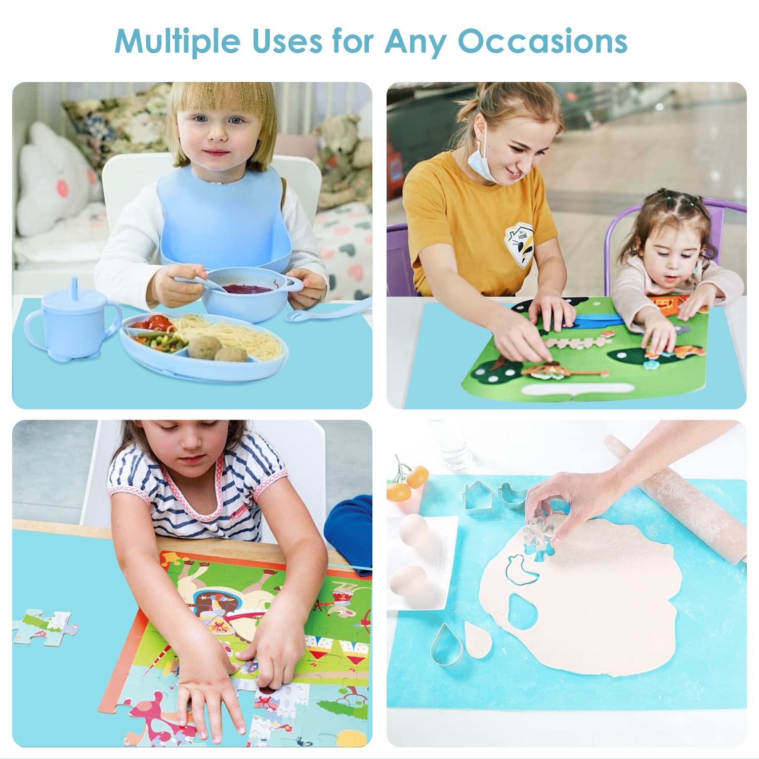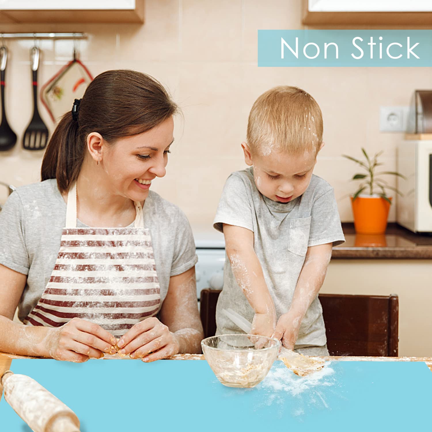 - 🍲 【Multi-Function Mat】: The blue silicone mats for kitchen counter are durable and easy to store, will not wrinkle due to temperature, silicone mats for kitchen counter is not deformed, vibrant color, cuttable, perfect as a non-stick silicone baking mat, silicone kids placemat, craft mat, silicone dab mat, can also be placed on the top of the dryer to prevent scratches.