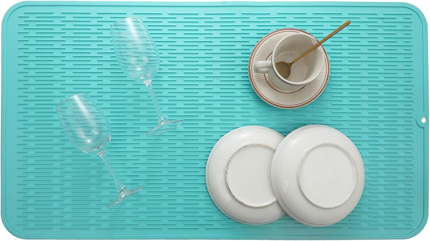 Silicone Dish Drying Mat for Multiple Usage,Easy clean,Eco-friendly,Heat-resistant Silicone Mat for Kitchen Counter or Sink,Refrigerator or Drawer Liner Mint 4XL 32 inches x 18 inches