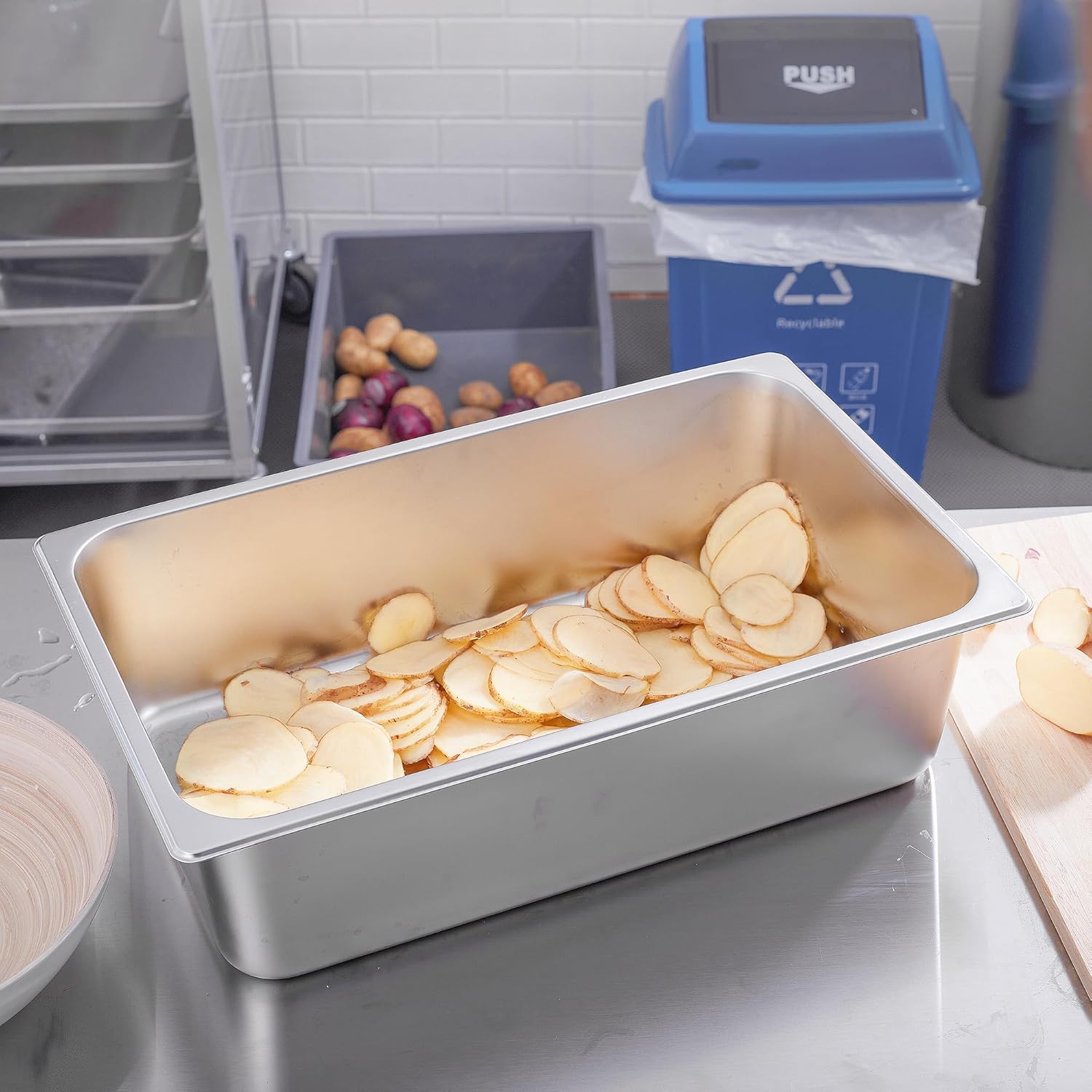 - User Friendly: The catering food pans feature reinforced edges and round corners for added strength and protection where the pan undergoes the most wear and tear, ensuring long-term use. The pans have an integrated design with no welding or gaps, and crimping round edges protect your hands from scratches while ensuring a secure and comfortable grip that is deformation-resistant.