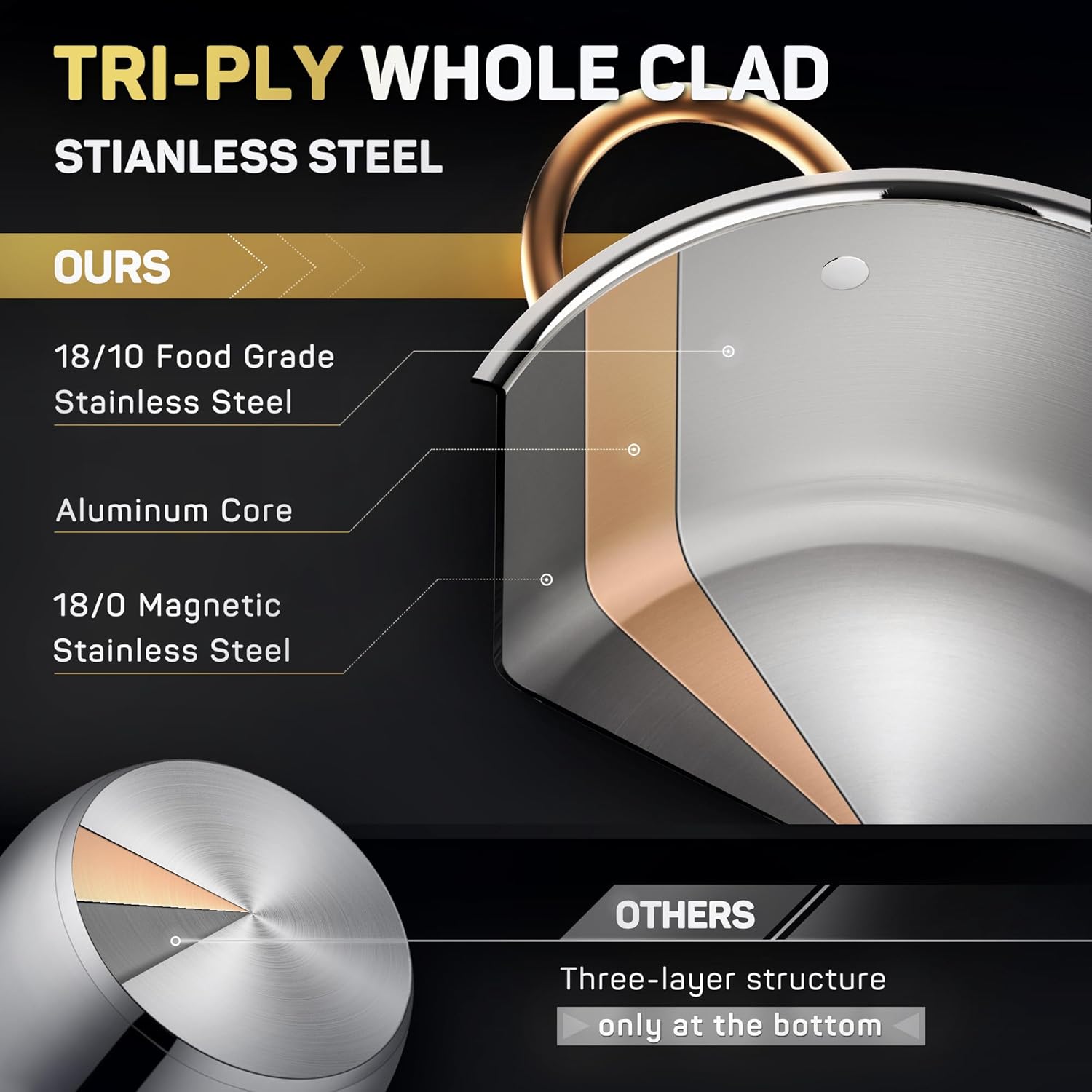 - Triple-Layer Stainless Steel Construction - Not Just the Bottom, But the Entire Body. Seamless Integration Sets It Apart from Other Stock Pots, Ensuring Rapid and Efficient Heat Distribution.