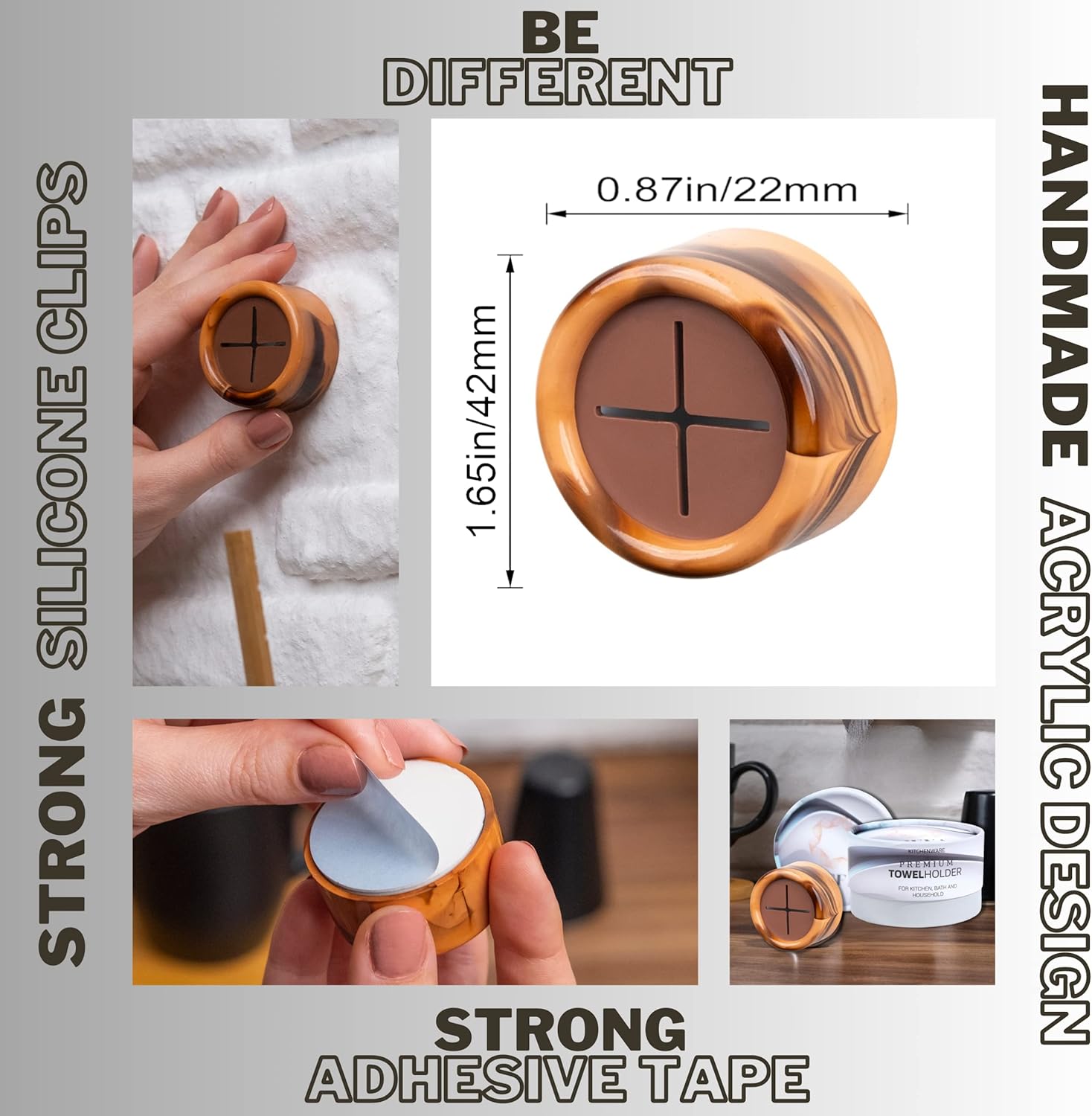 - Elegance & Premium Design - Our towel hooks feature a premium and exclusive design with acrylic body that is both elegant and durable. Patterns may differ from what is shown in the picture, as it is a product-specific application. Unlike similar hangers, our product uses high quality materials for long-lasting use. You will appreciate the premium feel and user experience. You are holding our product in your hand.